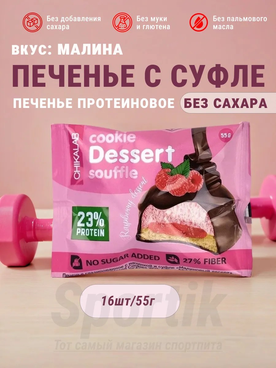 Печенье Chikalab cookie dessert soufle малина 16 х 55г