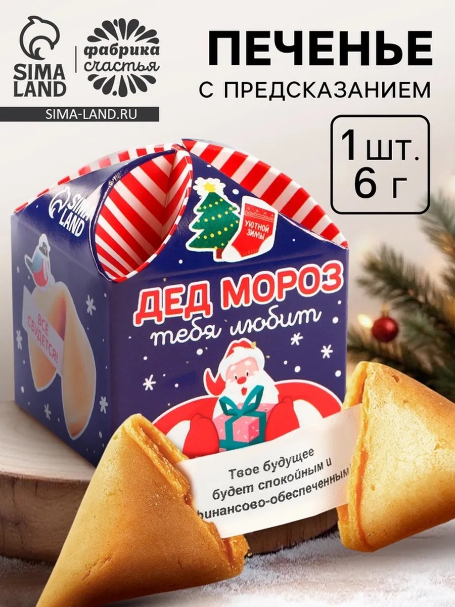Печенье с предсказанием на новый год «Дед Мороз тебя любит» - это не просто вкусное лакомство, но и возможность получить новогоднее предсказание. В комплекте идет одно печенье весом 6 грамм, что делает его легким и удобным для употребления.Состав печенья включает в себя только качественные ингредиенты: муку пшеничную высшего сорта, растительное масло, сахар-песок, воду, яичный порошок, ванилин и ароматизатор, идентичный натуральному. Благодаря такому составу, печенье получается мягким, ароматным и вкусным.Особенностью печенья является наличие предсказания на новый год. Это делает его не просто вкусным десертом, но и возможностью получить заряд позитивных эмоций и настроиться на праздничный лад.Печенье с предсказанием на новый год «Дед Мороз тебя любит» имеет срок годности 18 месяцев, что позволяет наслаждаться его вкусом и предсказанием в течение всего года.Выбирая это печенье, вы получаете не только вкусное лакомство, но и возможность сделать свой праздник еще более ярким и запоминающимся. Этот товар также можно найти: Печенье в коробках, печенье без сахара, печенье савоярди, печенье протеиновое, печенье с предсказаниями, печенье bombbar, печенье савоярди для тирамису