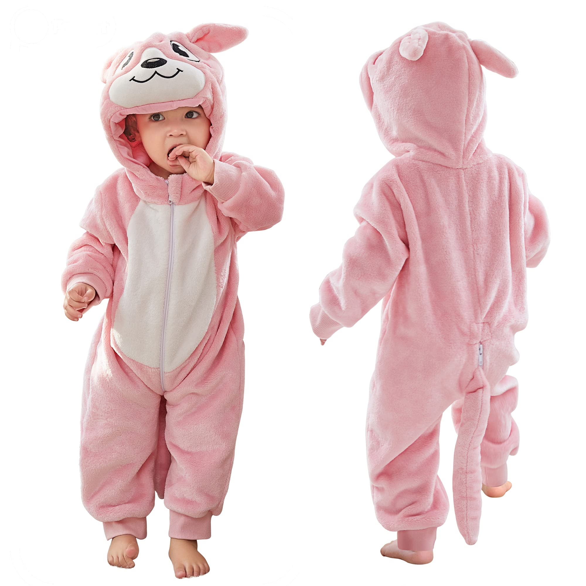 COOKY.D Baby Hooded Rompers Infant Winter Flannel Jumpsuit Pajamas 2-36 Months 24-30 Months Pink
