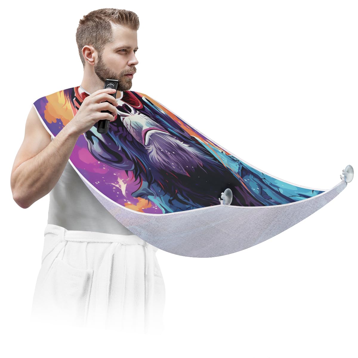 DESCRIPTION Material: polyester fabric Size: 45.2L x 28.5W inches Product includes: 1 piece shaving bib, 2 suction cup hooks. Stylish Design The stylish personalized graphic design of the beard bib makes it an avant-garde Beard Hair Catcher, with multiple graphics for you to choose from, we are sure you will fall in love with this beard catcher. Care Options Machine wash cold or hand wash, gentle cycle, air dry naturally or tumble dry low temperature, do not use bleach. Convenient to carry The collapsible function of the beard bib allows you to easily put it into your backpack or suitcase even when you are traveling, on business trips, folding it up won't take up too much space for you.