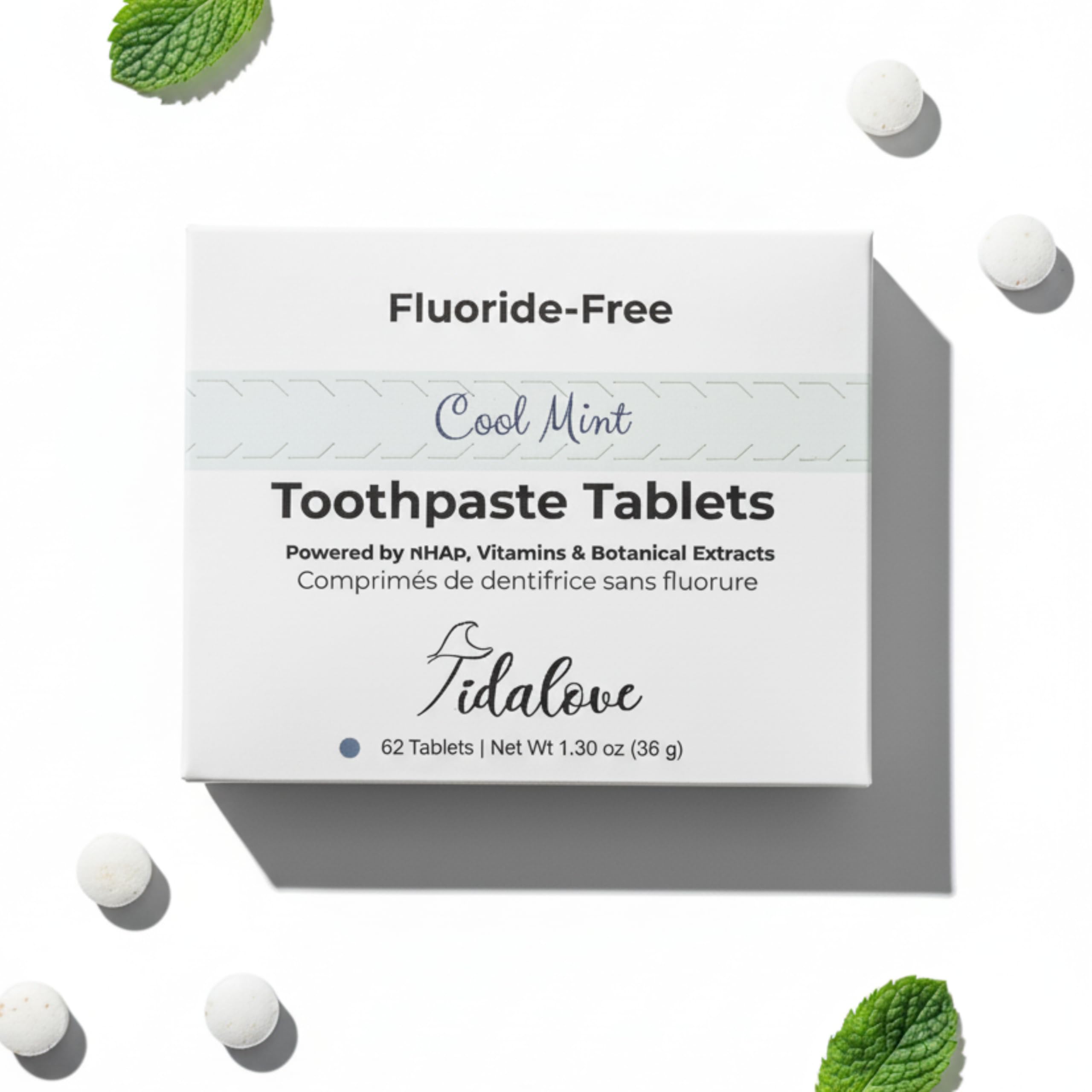 Cool Mint Fluoride-Free Toothpaste Tablets with Nano Hydroxyapatite | Natural Whitening Enamel Strengthening Plastic-Free & Travel-Friendly (1 Month Refill) 62 Tablets Mint - 1Month Refill