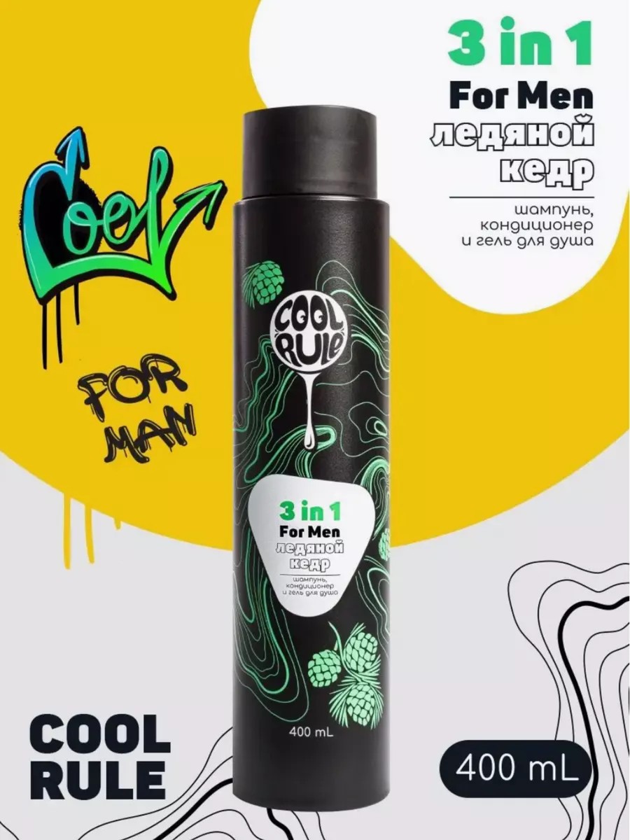 В бешеном ритме жизни зачастую нет времени на различные средства для ухода. Для этого на помощь мужчинам приходит универсальное средство 3 в 1 Cool Rule for men «Ледяной кедр» 400 мл. Мужской шампунь, бальзам-кондиционер и гель для душа — это надежная тройная защита, ощущение свежести и прилив энергии надолго. Активные компоненты очищающего и ухаживающего состава обеспечивают бережное очищение, увлажнение и питание. Приятный и тонизирующий хвойный аромат удивит и вдохновит на новые подвиги!