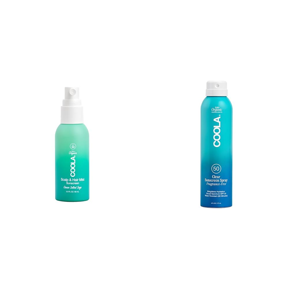COOLA Organic Sunscreen Bundle: SPF 30 Scalp & Hair Mist (2 Fl Oz) + SPF 50 Body Spray (6 Fl Oz) Vegan & Gluten Free