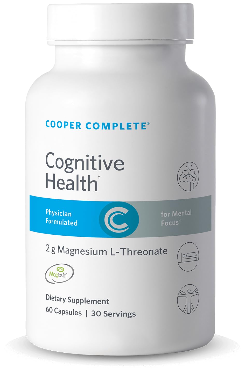 Cooper Complete Cognitive Health 2 g Magnesium L-Threonate (Magtein). 60 Gluten-Free Vegetarian Capsules. 30 Servings