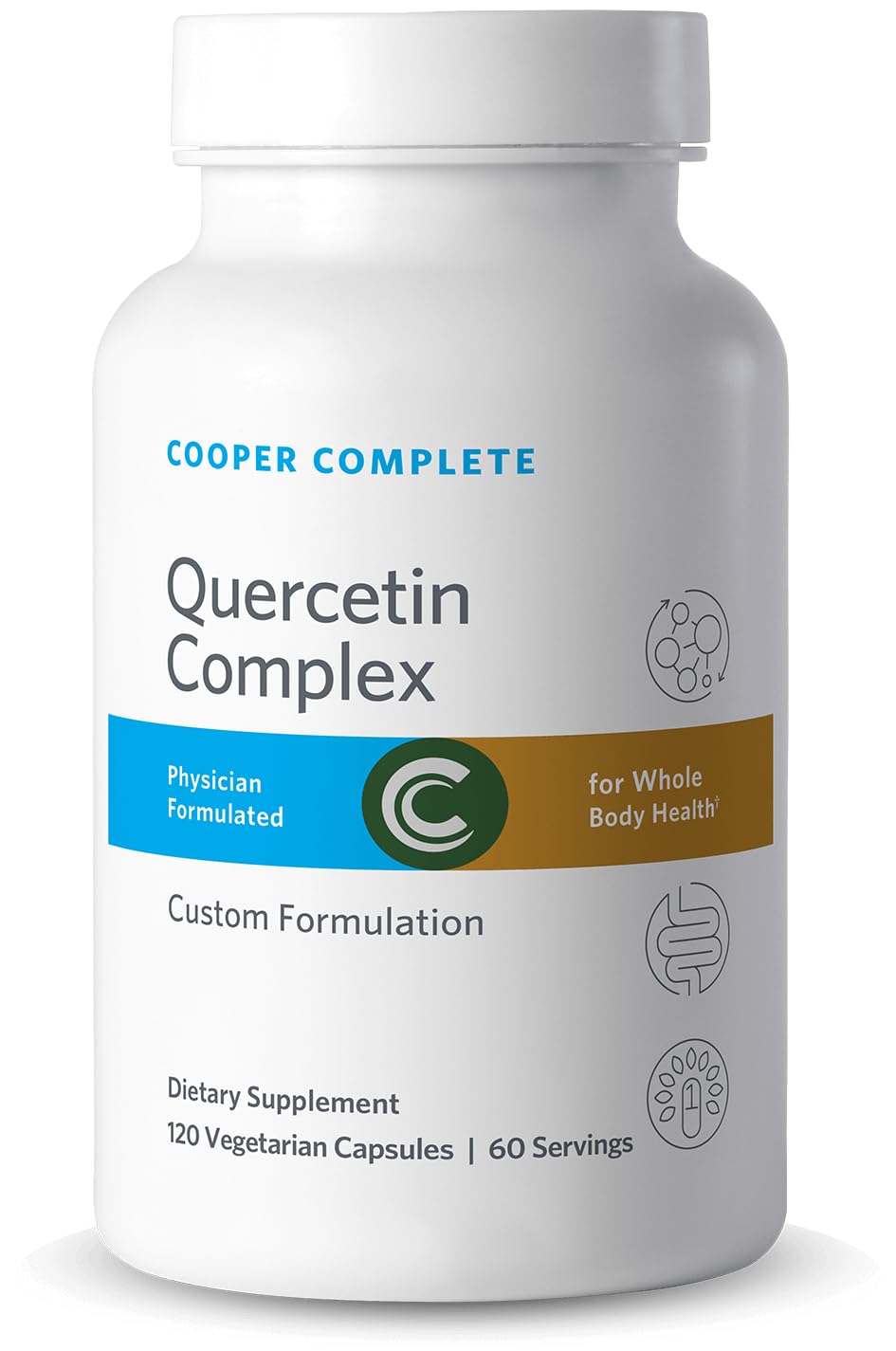 TRUSTED EXPERTS: The foundation for Cooper Complete was established when Kenneth H. Cooper, MD, MPH, founded the world-renowned Cooper Clinic in 1970. Each ingredient and level of ingredient is carefully considered based on the overall body of scientific research. Cooper's purpose is to improve the quality and quantity of life. HIGH QUALITY GUARANTEE: Cooper Complete Quercetin is made from the highest quality ingredients available and is manufactured in a cGMP compliant facility in the USA. BROMELAIN: Derived from pineapple, bromelain may enhance the body's ability to utilize quercetin. ALLERGIES: Helps regulate histamine release to support seasonal allergy relief. ANTIOXIDANT SUPPORT: Helps support a healthy immune system, gastrointestinal tract, and respiratory function.