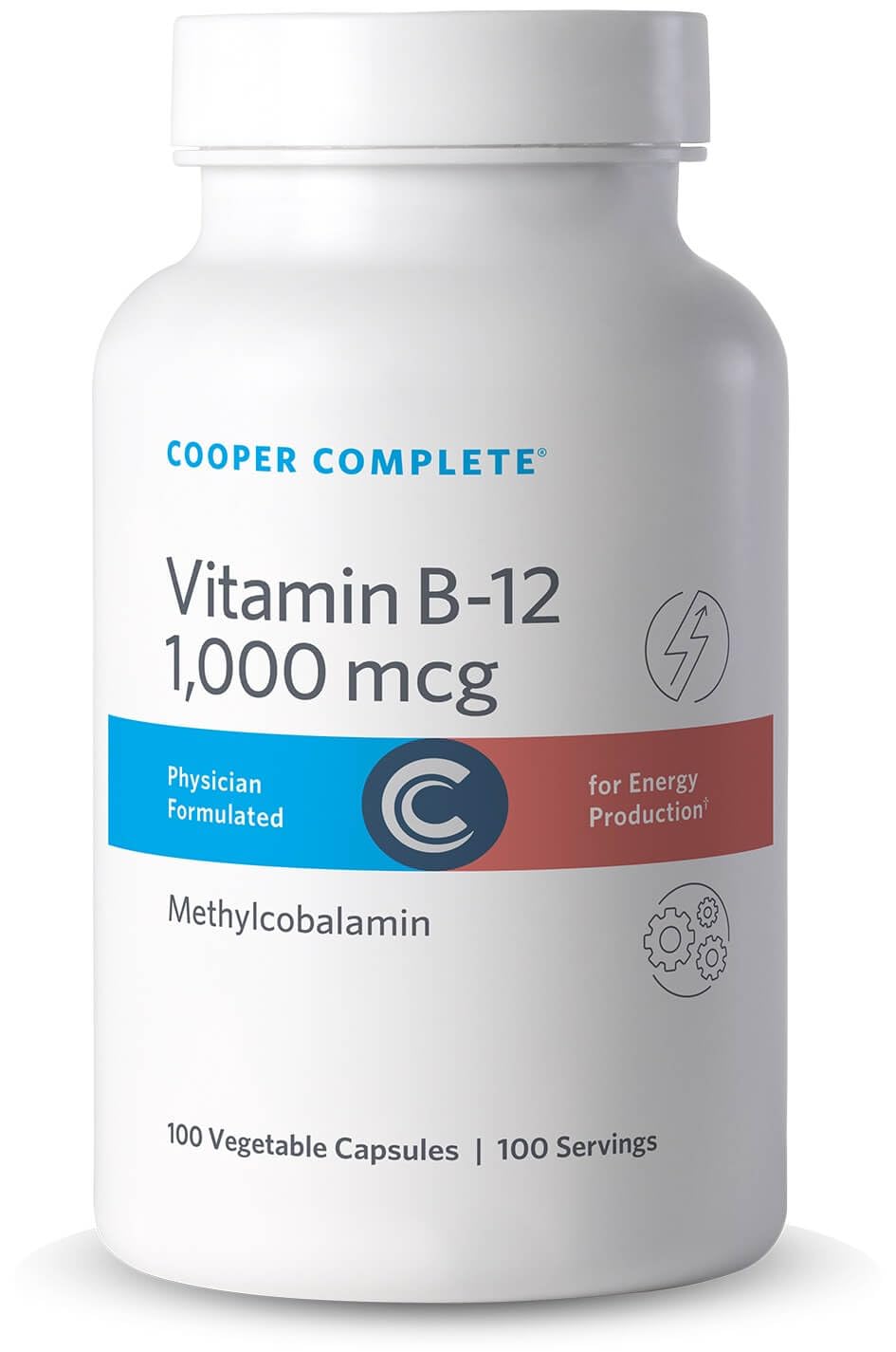 TRUSTED EXPERTS: The foundation for Cooper Complete was established when Kenneth H. Cooper, MD, MPH founded the world-renowned Cooper Clinic in 1970. Each ingredient and level of ingredient is carefully considered based on the overall body of scientific research. Cooper's purpose is to improve the quality and quantity of life. HIGH QUALITY GUARANTEE: Cooper Complete Vitamin B12 is made from the highest quality ingredients available and is manufactured in a cGMP compliant facility in the USA. ALLERGENS: Gluten-Free, non-GMO. SERVING: One capsule provides 1,000 mcg of Vitamin B12 (methylcobalamin). Each bottle contains 100 servings. ENERGY METABOLISM: Vitamin B12 plays a role in energy metabolism and red blood cell formation. Because B12 is primarily found in animal-based foods, individuals with limited dietary intake may benefit from supplementation to help maintain healthy B12 levels and support overall vitality.