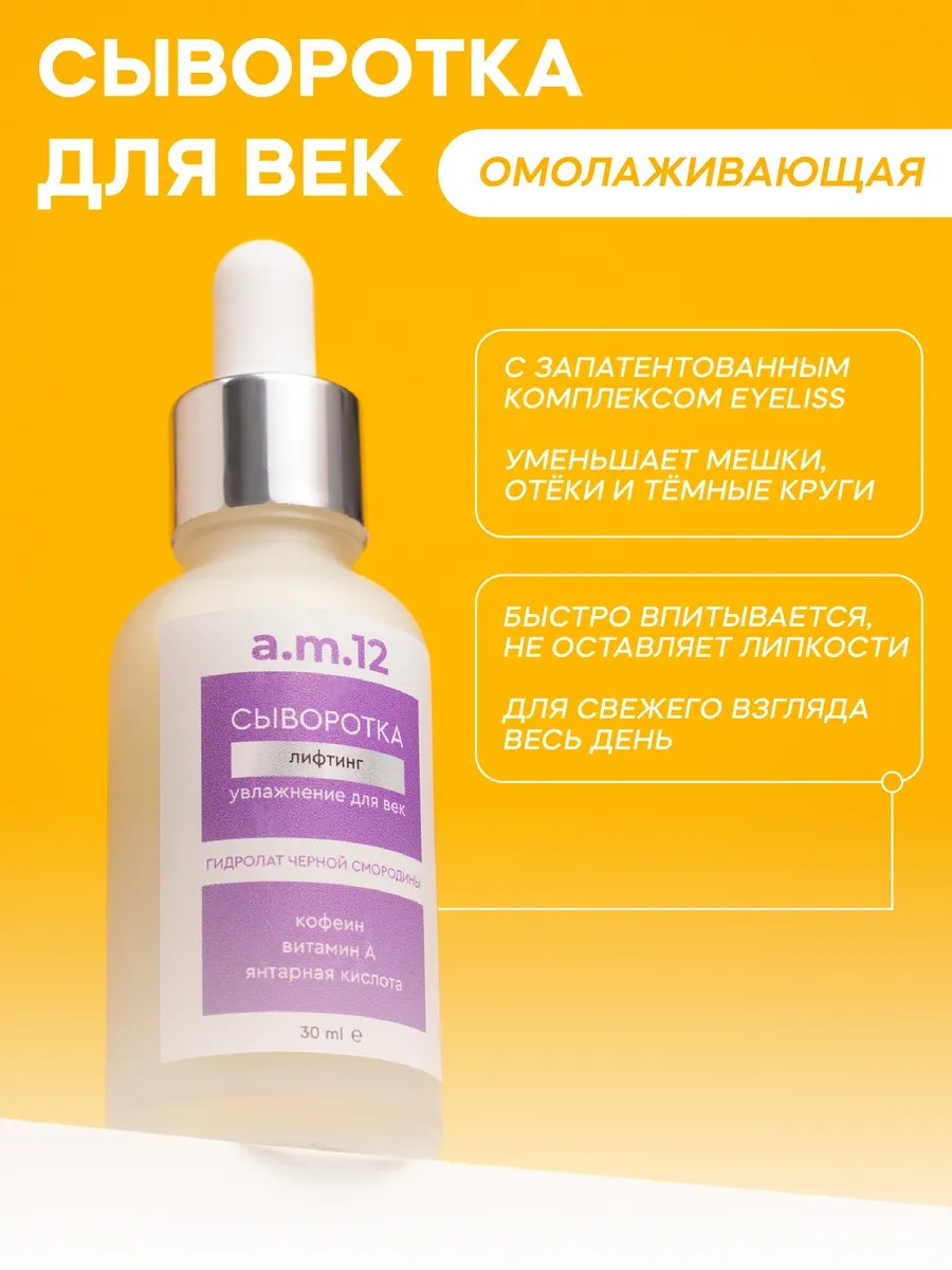 | Purpose of the serum | for eyelids; for skin around the eyes; for daily use |