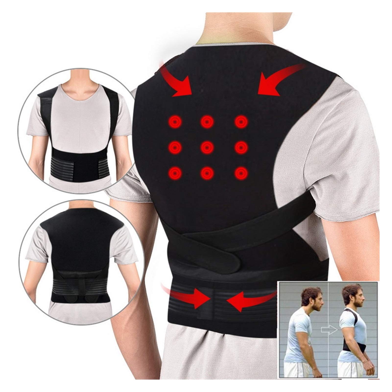 COOVS Turmalin Selbsterhitzende Magnetfeldtherapie Taille Rücken Schulter Haltungskorrektor Wirbelsäule Lendenwirbelstütze Rückenstützgürtel Schmerzlinderung (Farbe: Schwarz, Größe: Mittel) Schwarz M