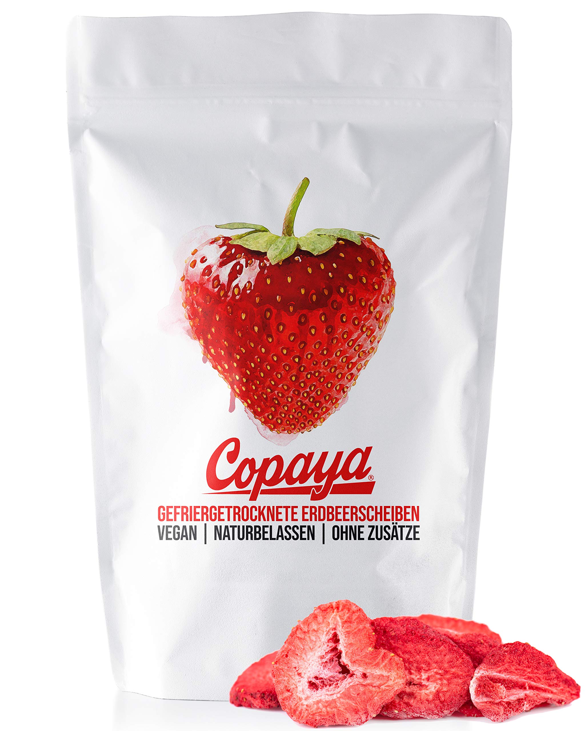 Copaya Fraises lyophilisées en tranches de 200 g, fraises croustillantes délicatement traitées et sans additifs, emballées dans un sac de protection aromatique pour une longue durée de vie