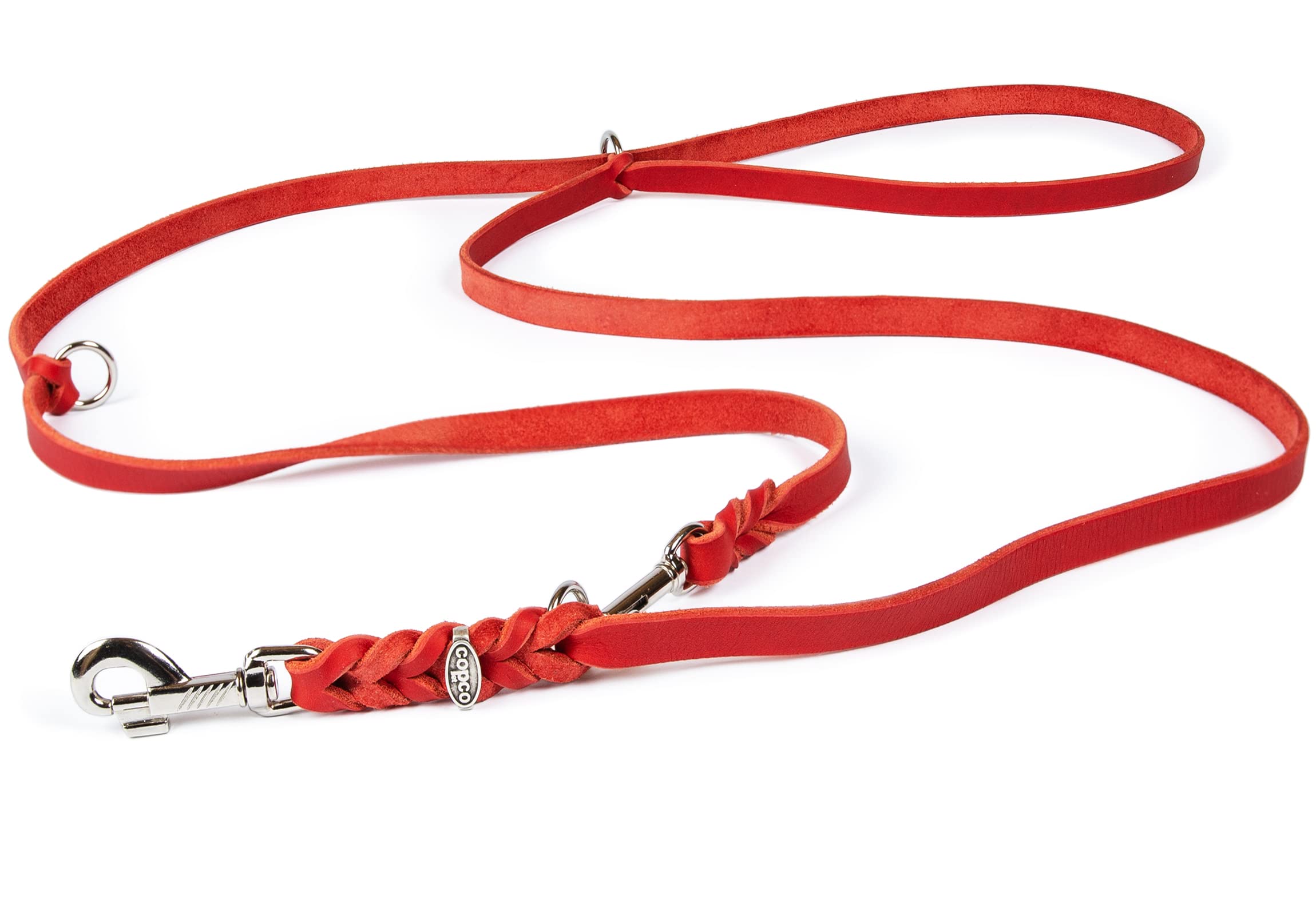 CopcoPet – Fettlederleine für Hunde – 3-Fach verstellbare Hundeleine aus weichem Leder mit Karabinern & Beschlägen aus Chrom – geflochtene Führleine 100% Handmade in Germany (2,40m x 15mm | Rot) 2,40 m x 15 mm Rot