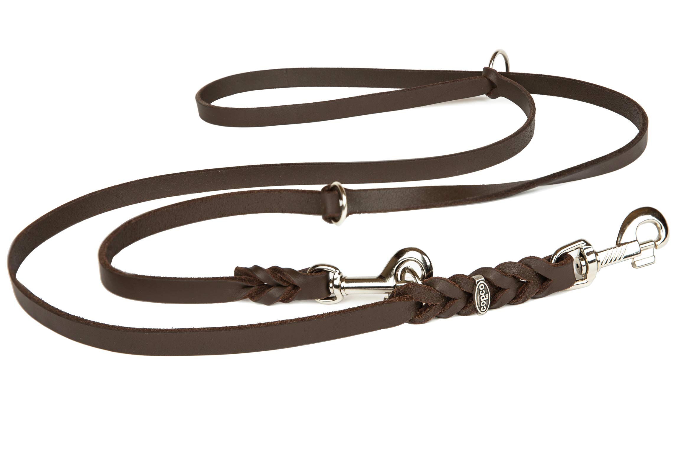 COPCOPET-fat leather line for dogs-3-way adjustable dog leash made of soft leather with carabiners & fittings made of chrome-braided leash 100% handmade in Germany (2.40m x 8mm | brown) 2.40 m x 8 mm brown