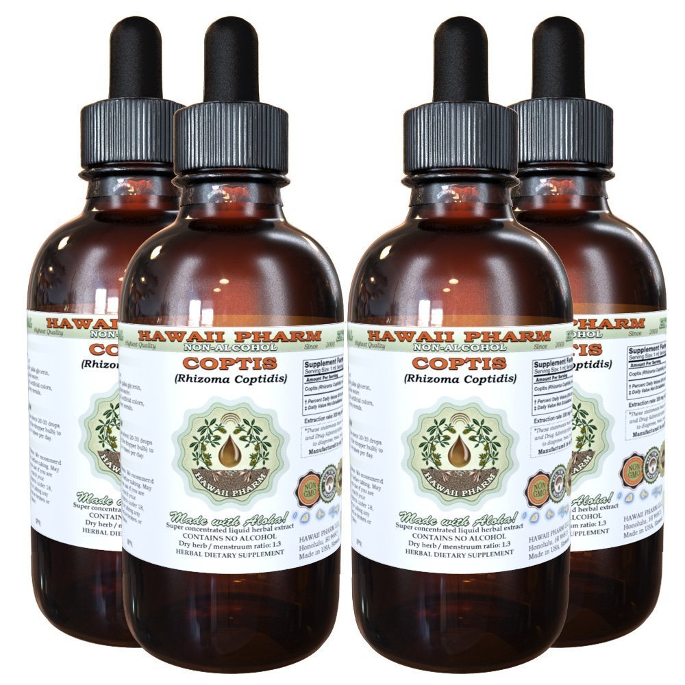 Coptis Alcohol-Free Liquid Extract Coptis (Rhizoma Coptidis) Dried Root Glycerite Hawaii Pharm Natural Herbal Supplement 4x4 oz 16 Fl Oz (Pack of 1)