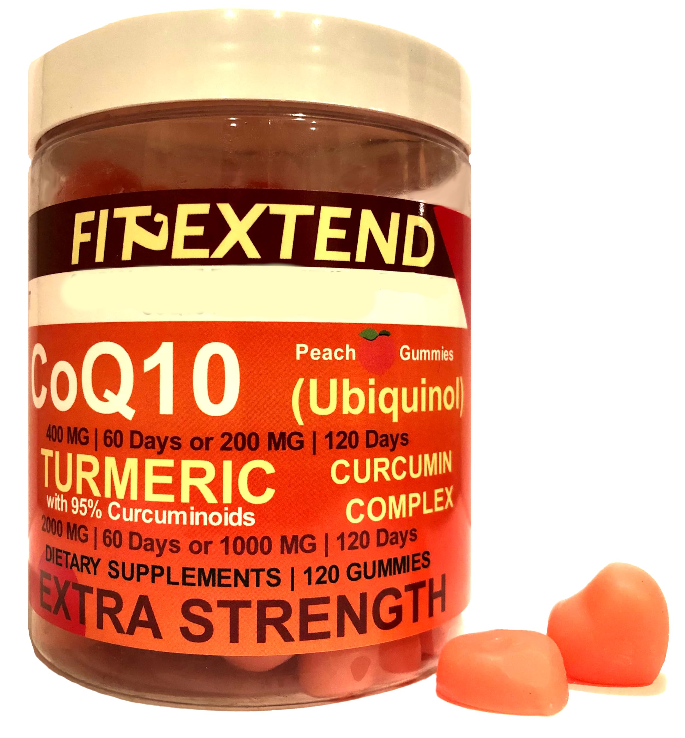 Deliciously Convenient CoQ10 Gummies: Say goodbye to hard-to-swallow pills and welcome the ease of coq10 turmeric gummies packed with essential nutrients. These peach-flavored delights offer a tasty solution. Unleash Your Vitality with Extra Strength CoQ10: Harness the power of CoQ10 400mg for optimal energy production and cellular regeneration. Perfectly formulated with potent CoQ10 to revitalize your body's natural resources. Vegan-Friendly - Our CoQ10 gummies are vegan, making them suitable for those following a plant-based lifestyle without sacrificing quality or effectiveness. Sugar-Free : CoQ10 gummies that are completely sugar-free, so you can support your health without compromising your diet. High Potency - Each serving contains (two gummies) of CoQ10 400 mg and Turmeric 2000 mg with a two month supply- that is 60 servings, providing a potent dose. Or (one gummy) of COQ10 200 mg and Turmeric 1000 mg with a four month supply- that is 120 servings, your choice. Delicious Gummies - Enjoy your daily dose of CoQ10 with our tasty CoQ10 peach gummies-not too sweet - just perfect, making it easy and enjoyable to support your overall wellness. 3x Better Absorption this is the ultimate antioxidant- Ubiquinol Ultra CoQ10 400mg Turmeric 2000mg offers superior absorption compared to regular CoQ10, ensuring you get the maximum benefits.
