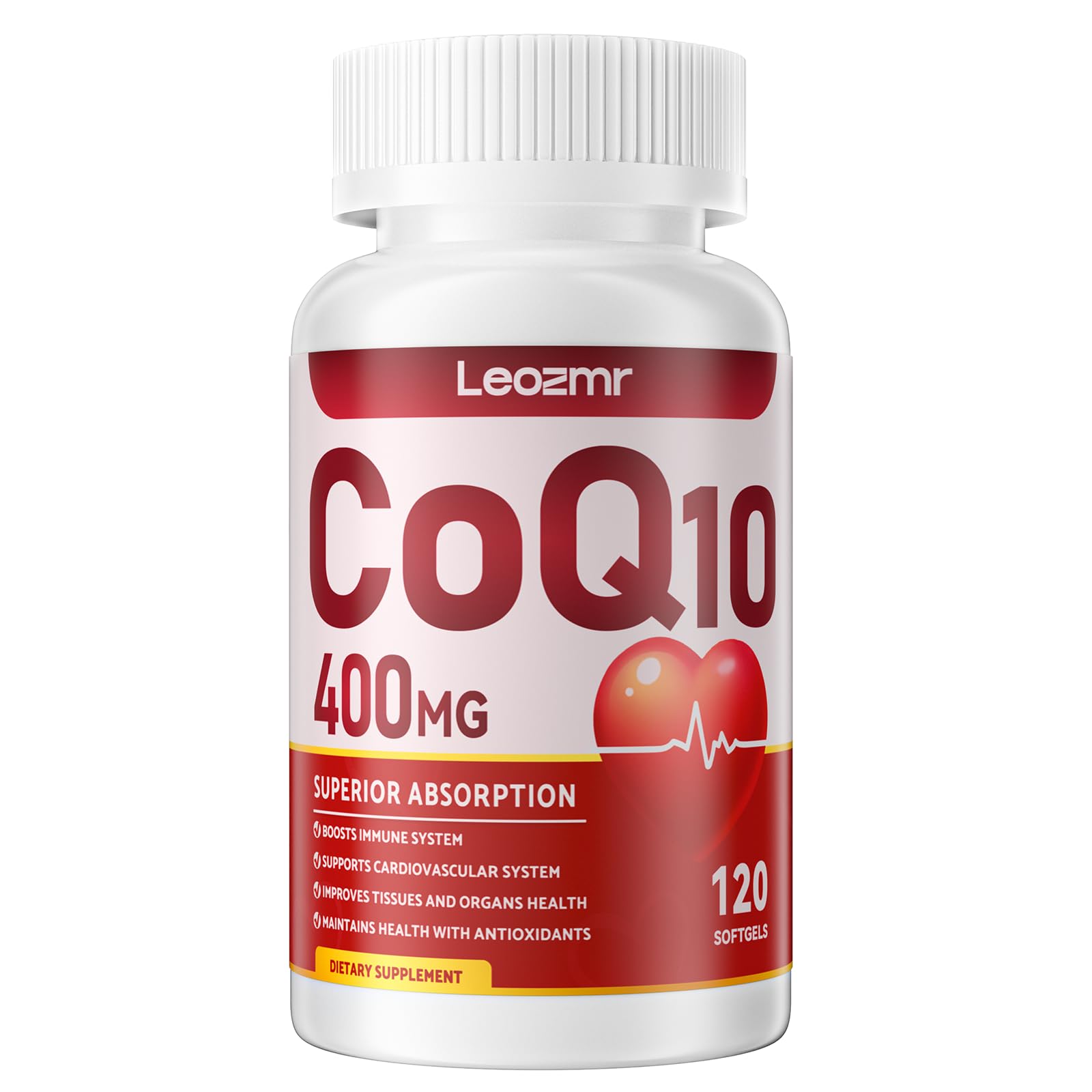 NATURAL INGREDIENTS - All our products are third-party tested and are manufactured in a cGMP-certified facility. No Artificial Flavors or Sweeteners, No Sugar, No Starch, No Gluten, No Soy, No Wheat, and Sodium-free. BENEFITS FOR STATIN DRUG USERS - CoQ10 plays a vital role in producing 95 of the energy used by our organs. However, natural CoQ10 levels drop with age or when taking statin medications. Therefore, adding a CoQ10 supplement when on statin drug therapy is better as it can help replenish lost CoQ10. OPTIMAL COMBINED OMEGA-3 - Every soft gel of Leozmr CoQ10 contains 60 mg of omega-3s, which are imperative to promoting heart health. Omega-3s can improve sleep quality, support the eyes, skin, and brain health. Better absorption, better taste, and no fishy burps!. ADVANTAGE BLACK PEPPER SUNFLOWER LECITHIN - Leozmr Coenzyme Q10 is blended with Black Pepper Extract and Sunflower Lecithin to enhance the absorption and bioavailability of Ubiquinone in the body. Black Pepper is not only a bioavailability enhancer it also has potent antioxidant properties. In addition, sunflower lecithin is safer than other sources of lecithin as it has been shown to help with skin health and improve liver function. ENHANCED COQ10 WITH PQQ - Our CoQ10-400mg provides a 120 day supply and helps you to increase your natural CoQ10 levels. Coenzyme Q10 (Ubiquinone) helps maintain a healthy heart. In addition, PQQ helps promote Mitochondria Energy Co-Factor levels and efficiency. Both of which are important for energy production and heart function.