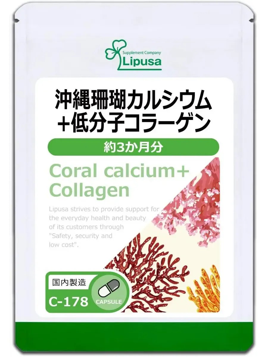 Coral Calcium + Collagen 180 pcs for 3-6 months Lipusa Coral calcium + collagen is a Japanese dietary supplement for maintaining healthy body tissue, increasing muscle and joint elasticity, and restoring the normal structure of bone and cartilage tissue. Contains calcium from corals growing off the coast of Japan (Okinawa) and low-molecular collagen peptide (from fish). Coral calcium is a mineral-rich calcium obtained from the corals of Okinawa Island. It has a unique structure, containing more than 70 microelements essential for human health and longevity. But most importantly, the nature of these elements is similar to their properties in human tissues, especially connective tissue. Coral calcium prevents calcium leaching from the skeleton and teeth, promotes the restoration of cartilage, joints, and bones, normalizes the acid-base balance, stimulates metabolism, eliminates chronic fatigue, and increases vitality. Collagen, one of the most common proteins in the human body, is an important component of connective tissue. Tendons, bones, joints, and cartilage, as well as teeth, skin, nails, and hair, are composed of connective tissue, the main component of which is collagen. Low-molecular-weight collagen, this form of collagen, promotes its more efficient digestion and absorption in the digestive tract. Daily use of this supplement promotes: Achieving optimal blood pH. It has a strong alkalizing, and therefore overall health-promoting, effect. More than 80% of the foods we consume are acid-forming, which over time leads to acidosis, acidification of the blood, lymph, and interstitial fluid, and metabolic disorders. This also impacts the cardiovascular and nervous systems. Calcium deficiency occurs in 50% of people by age 40, resulting in fatigue, premature aging, and gastrointestinal disorders. Coral calcium, as the best antioxidant, neutralizes free radicals and protects cells from destruction, which helps strengthen the immune system, it saturates the body with calcium, due to which bones become stronger, tissues are supplied with oxygen, and blood is saturated with oxygen. Normalizes blood sugar and blood pressure. * This dietary supplement is especially relevant in old age and advanced age, during perimenopause; menopause in women; with ovarian failure syndrome; with oophorectomy; underweight, etc. All this allows us to classify collagen as a means of osteoporosis prevention and anti-aging agents. Arthritis. Gastrointestinal diseases. Cardiovascular diseases. Directions for use: take 1-2 capsules daily with water after meals. Contraindications: individual intolerance to the components. If you feel unwell or have an allergy, stop taking the product and consult a doctor. Packaging: 180 capsules. Course of treatment: designed for 3-6 months.