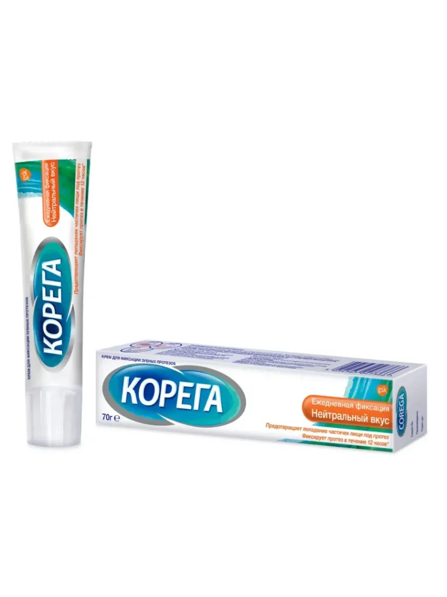 Крем для фиксации зубных протезов Корега Ежедневная защита, Нейтральный вкус повышает качество жизни людей, использующих зубные протезы. Основные преимущества: - Предотвращает попадение частичек пищи под протез Фиксирует протез в течение 12 часов Не содержит ароматизаторов, не изменяет вкус пищи