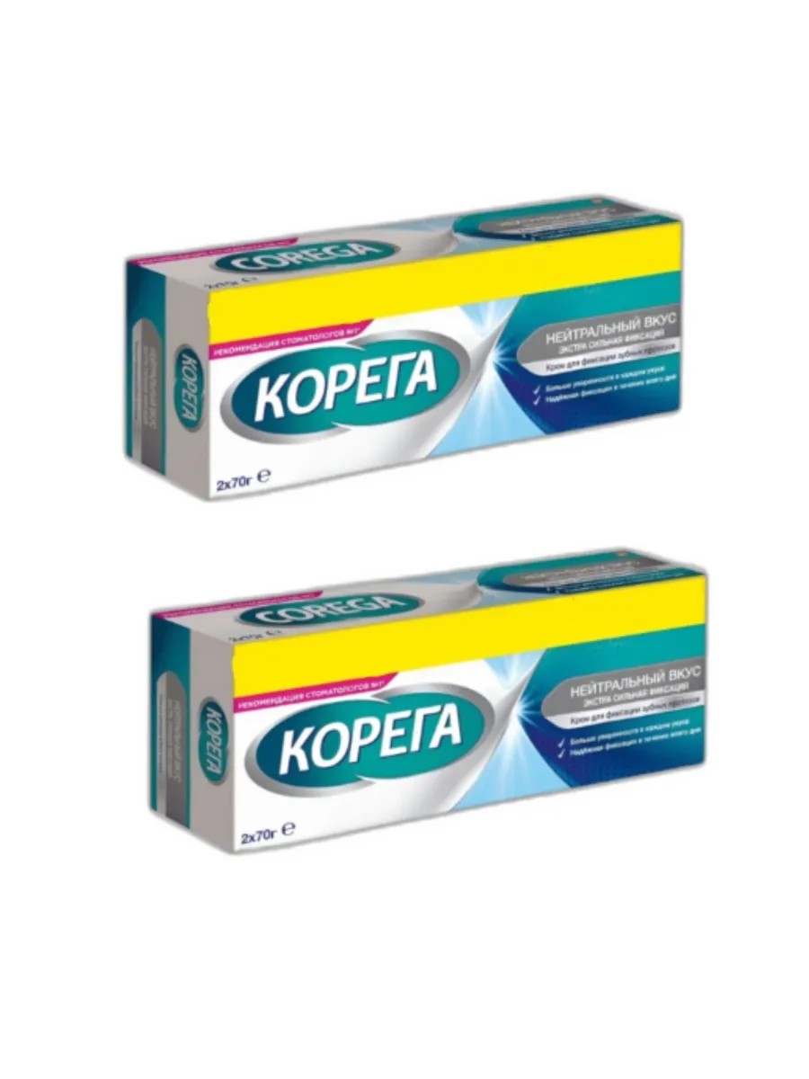 Корега. Corega крем зубных протезов, нейтральный вкус 2х70гр 2 шт