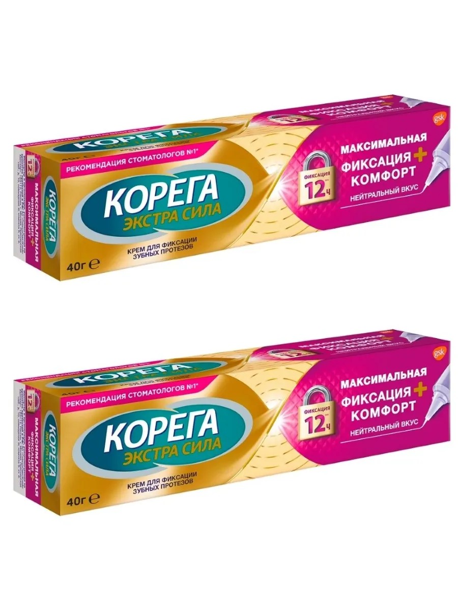 КОРЕГА КРЕМ Д/ФИКС З/ПРОТЕЗОВ МАКСИМАЛЬНАЯ ФИКСАЦИЯ+КОМФОРТ 40,0/НЕЙТР ВКУС/2 шт