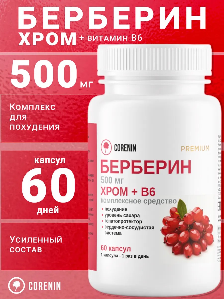 Corenin Берберин 500 мг комплекс для похудения в капсулах