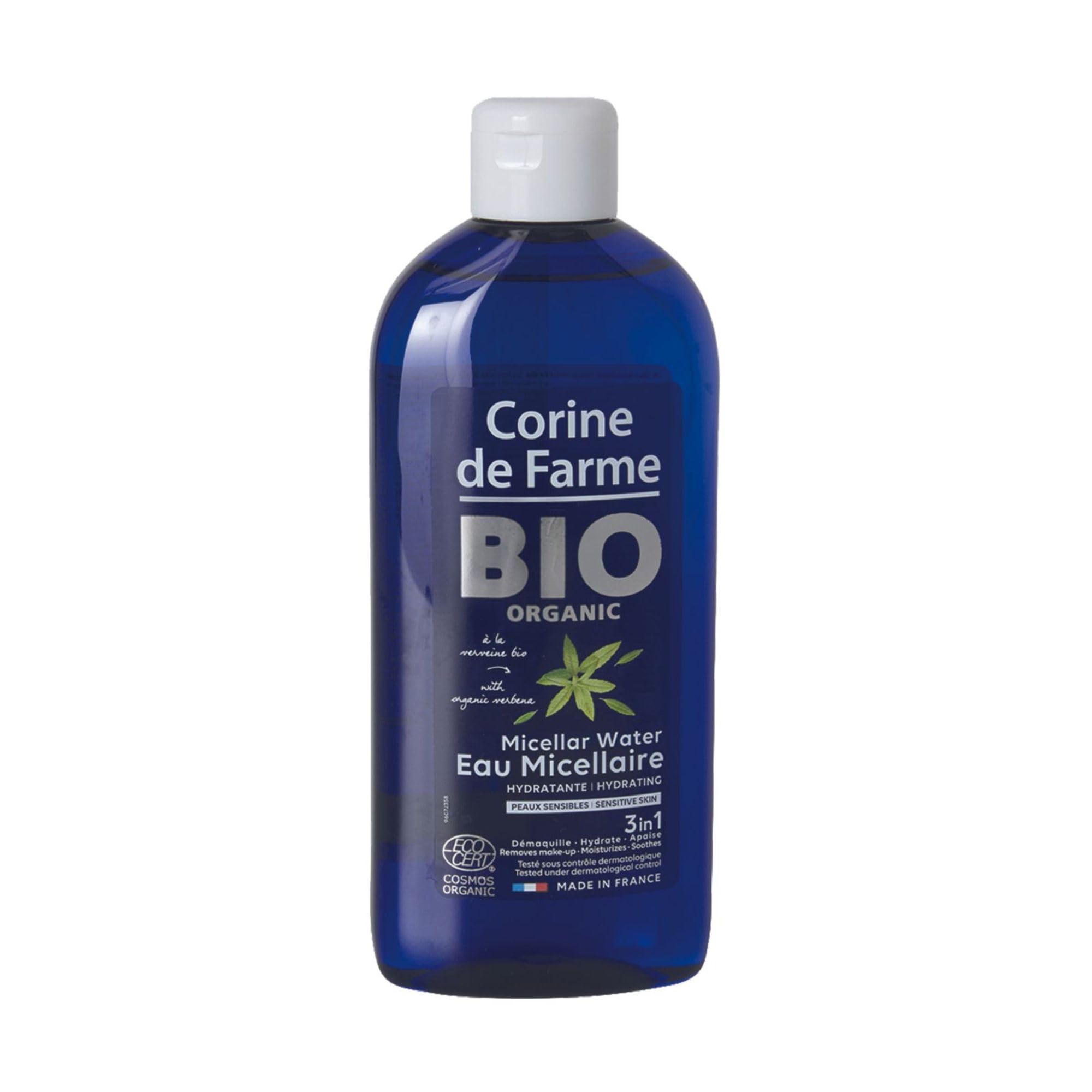 : At Corine de Farme, our mission is to empower all women to care for themselves and their families with high-quality, trustworthy products. Our skincare products, made with natural or certified organic ingredients, are suitable for all skin types, even the most sensitive. It all began with Paul Duprez, who, in 1969, partnered with a homeopathic pharmacist. Together, they developed the first herbal decoctions in the laboratory of a small pharmacy, which led to the creation of natural skincare and cleansing products for babies' sensitive skin. Three generations later, Corine de Farme now offers a range of skincare and beauty products formulated with over 95 naturally derived or Ecocert-certified organic ingredients, dedicated to the sensitive skin of the whole family. Entirely made in France in our production workshops, our skincare products are developed and produced in keeping with our family expertise. Its formula with organic verbena extract provides 3-in-1 effectiveness: it effectively removes makeup, soothes, and hydrates the skin. Ingredients: Aqua, Glycerin, Sodium Levulinate, Polyglyceryl-4 Caprate, Polyglyceryl-6 Caprylate, Sodium Benzoate, Parfum, Caprylyl Capryl Glucoside, Citric Acid, Aloe Barbadensis Leaf Juice Powder , Verbena Officinalis Leaf Extract , Potassium Sorbate. Ingredients from organic farming. 10 of the total ingredients are from organic farming. 99 of the total is of natural origin. Cosmos Organic certified by Ecocert. Greenlife according to the Cosmos standard.100 Made in France: With its three production workshops and integrated research laboratory, Corine de Farme is a flagship of French cosmetics. This family business, based in northern France, innovates and invests in local production, 100 Made in France. Your Evening Ritual: Take care of your skin every day. The verbena used in our formula has antioxidant properties for radiant skin, day after day. Natural Product: Our micellar water is certified organic by Ecocert. 99 of its ingredients are of natural origin and 10 come from organic farming. Gentle on the Skin: Our facial cleanser is suitable for all skin types. In addition to its cleansing effect, it soothes tightness and deeply hydrates the skin. Effectively Removes Makeup: Our Micellar Cleansing Water is effective even with waterproof makeup. You can use it with cotton pads or with your bare hands.Description du produit Chez Corine de Farme, notre mission est de permettre à toutes les femmes de prendre soin d'elles et de leurs familles avec des produits de qualité et de confiance. Nos soins, d'origine naturelle ou certifiés bio, s'adressent à toutes les peaux même les plus sensibles. C'est l'histoire de Paul Duprez qui, en 1969, s'est associé avec un pharmacien homéopathe. Ensemble, ils ont développé les premières décoctions végétales dans le laboratoire d'une petite officine qui donneront naissance aux produits de soin et de toilette d'origine naturelle pour la peau sensible des bébés. Trois générations plus tard, Corine de Farme propose désormais une gamme de soins et de beauté formulés à plus de 95 d'ingrédients d'origine naturelle ou certifiés bio par Ecocert dédiée à la peau sensible de toute la famille. Entièrement, fabriqués en France dans nos ateliers de production, nos soins sont élaborés et produits dans la continuité de notre savoir-faire familial.Sa formule à l'extrait de Verveine BIO apporte une efficacité 3 en 1 : elle nettoie efficacement le maquillage, apaise et hydrate la peau Ingrédients INGREDIENTS : Aqua, Glycerin, Sodium Levulinate, Polyglyceryl-4 Caprate, Polyglyceryl-6 Caprylate, Sodium Benzoate, Parfum, Caprylyl Capryl Glucoside, Citric Acid, Aloe Barbadensis Leaf Juice Powder , Verbena Officinalis Leaf Extract , Potassium Sorbate- Ingrédients issus de l'Agriculutre biologique , 10 du total des ingrédients sont issus de l'Agriculture Biologique 99 du total est d'origine naturelle, Cosmos Organic certifié par Ecocert, Greenlife selon le référentiel Cosmos100 Made in France : Avec ses 3 ateliers de production et son laboratoire de recherche intégré, Corine de Farme est un fleuron de la cosmétique made in France. Cette entreprise familiale basée dans le nord de la France innove et investit dans la production locale, 100 Made in France. Votre Rituel Du Soir : Prenez Soin De Votre Peau Au Quotidien. La Verveine Utilisée Dans Notre Formule Possède Des Propriétés Antioxydants Pour Une Peau Rayonnante, Jour Après Jour. Produit Naturel : Notre Eau Micellaire Est Certifiée Bio Par Le Label Ecocert. 99 De Ses Ingrédients Sont D'Origine Naturelle Et 10 Proviennent De L'Agriculture Biologique. Doux Avec La Peau : Notre Démaquillant Visage Est Respectueux De Tous Les Types De Peau. En Plus De Son Effet Nettoyant, Il Apaise Les Tiraillements Et Hydrate L'Épiderme En Profondeur. Démaquille Efficacement : Notre Eau Micellaire Démaquillante Est Efficace Même Avec Le Maquillage Waterproof. Vous Pouvez L'Utiliser Avec Des Cotons Démaquillants Ou À Mains Nues.Corine de Farme - Eau Micellaire Hydratante BIO - Démaquillant à l'Extrait de Feuille de Verveine - Hydrate et Apaise - Certifiée Bio ECOCERT, 99 d'Ingrédients Naturels - 400 ml 400 ml (Lot de 1)
