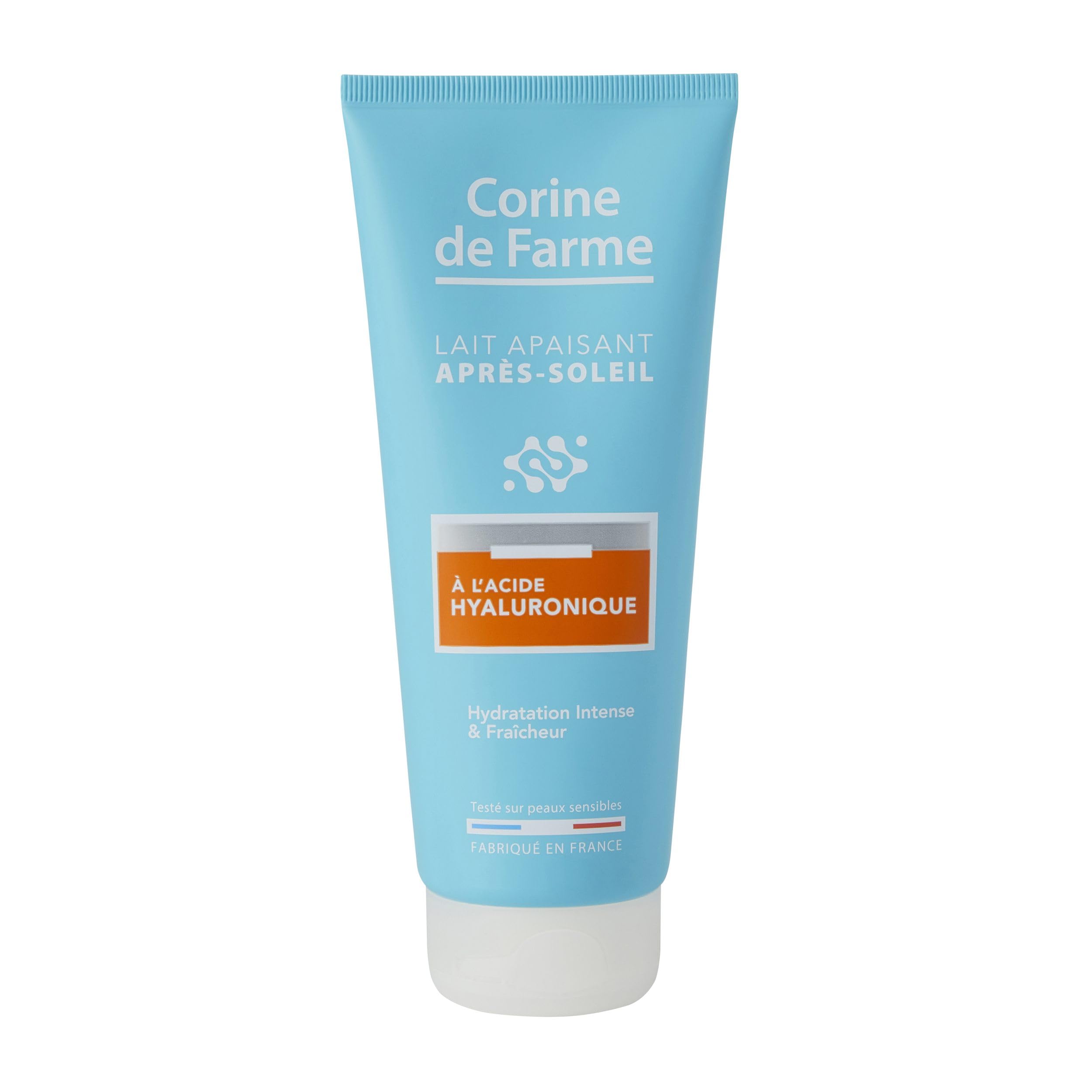 Corine de Farme, the nature of sensitive skin! Products designed and manufactured in France for the whole family, babies, children, adults. At Corine de Farme, our mission is to help you take care of you and your family with quality and trusted products. Our treatments, of natural origin or certified organic, are aimed at all skin types, even the most sensitive. The Soothing After-Sun Milk with Hyaluronic Acid will take good care of you after exposure to the sun. It intensely and lastingly rehydrates the skin, giving it a feeling of freshness and comfort by soothing tightness. Results ? Sublimated skin and tan! Our commitments at the heart of our concerns: Corine de Farme is a company committed to Clean Beauty and eco-design. We are moving forward step by step to improve our ecological footprint and human well-being, in a process of continuous improvement. Taking care of sensitive skin and the planet is a real challenge that all of our teams are happy to take on. INGREDIENTS Aqua, Glycerin, C10-18 Triglycerides, C15-19 Alkane, Caprylic Capric Triglyceride, Polyglyceryl-3 Distearate, Glyceryl Stearate Citrate, Butyrospermum Parkii Butter, Glyceryl Caprylate Caprate, Cocos Nucifera Oil, Hydroxyethyl Acrylate Sodium Acryloyldimethyl Taurate Copolymer, Sorbitan Caprylate, Cetearyl Alcohol, Parfum, Propanediol, Benzoic Acid, Carbomer, Sodium Hyaluronate, Polysorbate 60, Sorbitan Isostearate, Sodium Hydroxide, Gardenia Taitensis Flower Extract, Citric Acid, Tocopherol, Helianthus Annuus Seed Oil DIRECTIONS FOR USE Apply generously to the entire body and face after each exposure. Repeat the application if the skin feels tight or dehydrated. SAFETY WARNING From 3 years old. Avoid contact with the eyes. Do not apply to irritated or damaged skin. Formulated in France and tested on sensitive skin under dermatological control to ensure safe use. Recyclable tube - Made in France. Directions for use: Apply generously to the entire body and face after each exposure. Reapply if the skin feels tight or dehydrated. Non-greasy, non-sticky, velvety touch: its creamy texture is non-greasy and non-sticky. This after-sun treatment absorbs quickly and envelops the skin in a delicate island scent that will captivate you. Optimal tan, beautified skin: after-sun effectively soothes feelings of tightness. The skin is more beautiful, softer, and plumped. The tan is enhanced for a beautiful, long-lasting tan. With hyaluronic acid: Corine de Farme's soothing after-sun lotion with hyaluronic acid intensely and lastingly rehydrates skin heated by the sun. It gives it a comfortable sensation of immediate freshness. Corine de Farme, la nature des peaux sensibles ! Des produits conçus et fabriqués en France pour toute la famille, bébé, enfant, adulte. Chez Corine de Farme, notre mission est de permettre de prendre soin de vous et de votre famille avec des produits de qualité et de confiance. Nos soins, d'origine naturelle ou certifiés Bio, s'adressent à toutes les peaux, même les plus sensibles. Le Lait Apaisant Après-Soleil à l'Acide Hyaluronique prendra bien soin de vous après une exposition au soleil. Il réhydrate intensément et durablement la peau, lui offrant une sensation de fraîcheur et de confort en apaisant les tiraillements. Résultats ? Une peau et un bronzage sublimés ! Nos engagements au cœur de nos préoccupations : Corine de Farme est une entreprise qui s'engage pour la Clean Beauty et l'éco-conception. Nous avançons pas à pas afin d'améliorer notre empreinte écologique et le bien-être humain, dans une démarche d'amélioration continue. Prendre soin des peaux sensibles et de la planète est un réel défi que l'ensemble de nos équipes se fait un plaisir de relever. INGRÉDIENTS Aqua, Glycerin, C10-18 Triglycerides, C15-19 Alkane, Caprylic Capric Triglyceride, Polyglyceryl-3 Distearate, Glyceryl Stearate Citrate, Butyrospermum Parkii Butter, Glyceryl Caprylate Caprate, Cocos Nucifera Oil, Hydroxyethyl Acrylate Sodium Acryloyldimethyl Taurate Copolymer, Sorbitan Caprylate, Cetearyl Alcohol, Parfum, Propanediol, Benzoic Acid, Carbomer, Sodium Hyaluronate, Polysorbate 60, Sorbitan Isostearate, Sodium Hydroxide, Gardenia Taitensis Flower Extract, Citric Acid, Tocopherol, Helianthus Annuus Seed Oil MODE D'EMPLOI Appliquer généreusement sur l'ensemble du corps et du visage après chaque exposition. Renouveler l'application en cas de sensation de tiraillement ou de déshydration de la peau. AVERTISSEMENT DE SÛRETÉ À partir de 3 ans. Éviter le contant avec les yeux. Ne pas appliquer sur une peau irritée ou abîmée. Formulé en France et testé sur peaux sensibles sous contrôle dermatologique pour garantir une utilisation sûre. Tube recyclable - Fabrication française. Conseils d'utilisation : appliquer généreusement sur l'ensemble du corps et du visage après chaque exposition. Renouveler l'application en cas de sensation de tiraillement ou de déshydration de la peau. Non gras, non collant, toucher velours : sa texture onctueuse est non grasse et non collante. Ce soin après-soleil pénètre rapidement et enveloppe la peau d'un délicat parfum des îles qui vous envoûtera. Bronzage optimal, peau embellie : l'après-soleil apaise efficacement les sensations de tiraillement. La peau est plus belle, plus douce et repulpée. Le bronzage est sublimé pour un beau teint hâlé durable. À l'acide hyaluronique : le lait apaisant après-soleil à l'acide hyaluronique Corine de Farme réhydrate intensément et durablement la peau échauffée par le soleil. Il lui apporte une sensation confortable de fraîcheur immédiate.