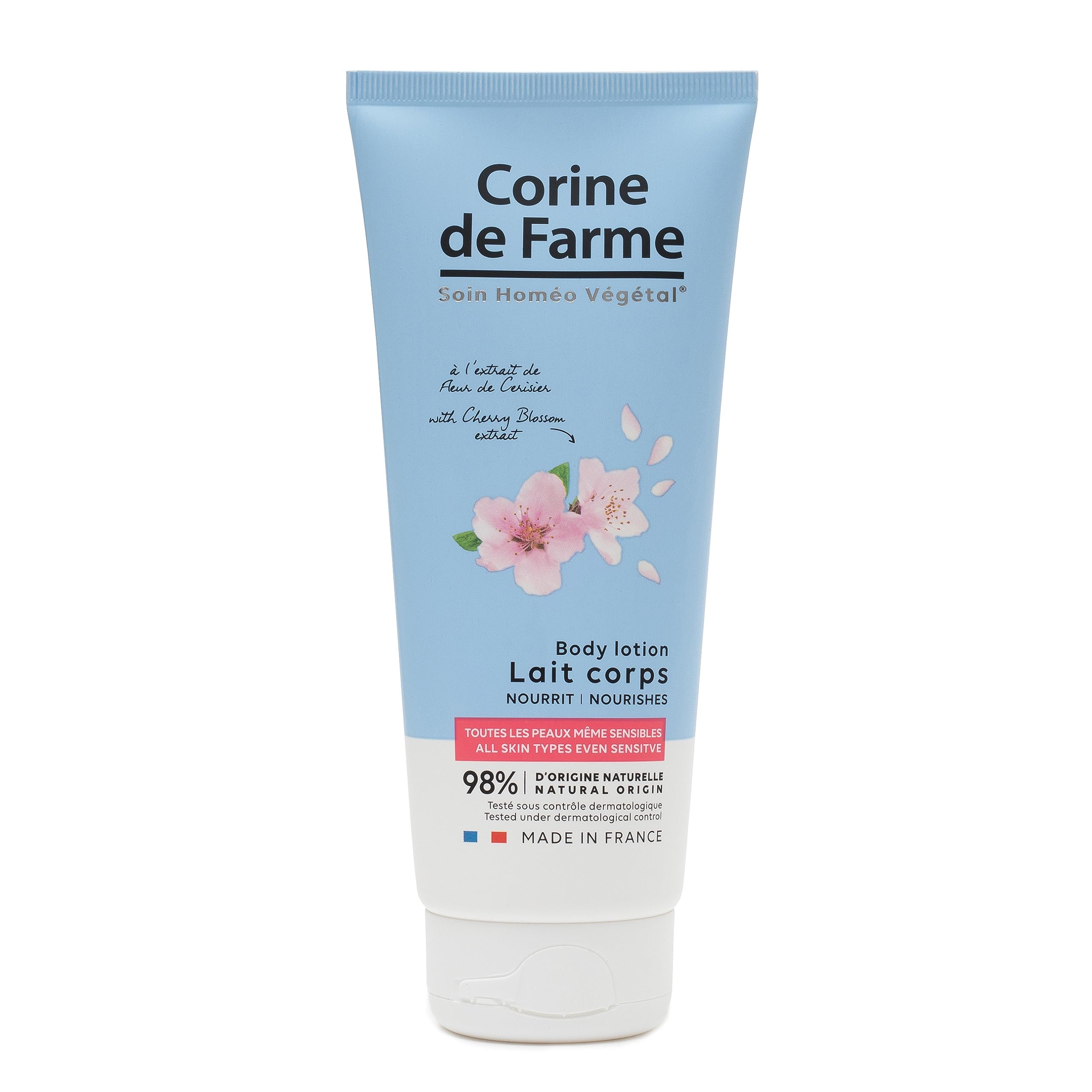 Corine de Farme traces its origins to 1969, when Paul Duprez joined forces with a homeopathic pharmacist to develop plant decoctions which would become the brand's first care products. Since then, three generations have succeeded each other, passing on and improving our family know-how, with the same objective: to enable all women to take care of themselves and their families. Our body milk with cherry blossom extract nourishes, hydrates and soothes the skin. Suitable for all skin types, even sensitive, it ensures optimal comfort of application. Our treatments are formulated in a minimalist way, with ingredients of natural origin and tested under dermatological control. Working to take care of you as much as our beautiful planet, we offer a range of care and beauty products composed of at least 95 natural or Ecocert certified ingredients. We develop them with the aim of respecting all skin types, even the most sensitive, and adapting to the needs of the whole family. SAFETY WARNING Do not apply to irritated or damaged skin. Keep out of reach of children.A wide range of skincare products: discover our different skincare products to complete your routine. Day cream, exfoliant, body lotion. We offer a range of comforting products for the body and face of the whole family. Formulated in France, under dermatological control: designed, manufactured, and packaged in France, this skincare product is formulated under dermatological control and has been tested on sensitive skin. Soft texture: its soft, non-greasy, and non-sticky texture easily penetrates the skin for unparalleled comfort of use. Apply daily to the body after showering. 98 natural ingredients: this nourishing milk is composed of 98 natural ingredients, including cherry blossom extract, rich in flavonoids and renowned for its antioxidant properties. Moisturizing body milk: providing comfort and suppleness, this body milk intensely nourishes and moisturizes the skin, for a moment of comfort and well-being. It is suitable for all skin types, even sensitive. Corine de Farme trouve ses origines en 1969, quand Paul Duprez s'associe avec un pharmacien homéopathe pour développer des décoctions végétales qui deviendront les premiers produits de soin de la marque. Depuis, trois générations se sont succédées, transmettant et améliorant notre savoir-faire familial, avec le même objectif : permettre à toutes les femmes de prendre soin d'elles et de leur famille. Notre lait corps à l'extrait de fleur de cerisier nourrit, hydrate et apaise la peau. Adapté à tous les types de peaux, même sensibles, il assure un confort d'application optimal. Nos soins sont formulés de manière minimaliste, avec des ingrédients d'origine naturelle et testés sous contrôle dermatologique. Oeuvrant pour prendre soin de vous autant que de notre belle planète, nous proposons ainsi une gamme de soins et de produits de beauté composés à minima de 95 d'ingrédients d'origine naturelle ou certifiés Ecocert. Nous les élaborons dans l'optique de respecter tous les types de peaux, mêmes les plus sensibles, et de s'adapter aux besoins de toute la famille. AVERTISSEMENT DE SÛRETÉ Ne pas appliquer sur une peau irritée ou endommagée. Tenir hors de portée des enfants.Une large gamme de soins : découvrez nos différents soins pour la peau afin de compléter votre routine. Crème de jour, exfoliant, lait corps… Nous proposons une panoplie de produits réconfortants pour le corps et le visage de toute la famille. Formulé en France, sous contrôle dermatologique : conçu, fabriqué et conditionné en France, ce soin pour la peau est formulé sous contrôle dermatologique et a été testé sur les peaux sensibles. Texture douce : sa texture douce, non grasse et non collante, pénètre facilement la peau pour un confort d'utilisation incomparable. À appliquer quotidiennement sur le corps après la douche. 98 d'ingrédients d'origine naturelle : ce lait nourrissant est composé à 98 d'ingrédients d'origine naturelle, dont l'extrait de fleur de cerisier, riche en flavonoïdes et réputé pour ses propriétés antioxydantes. Lait corps hydratant : apportant confort et souplesse, ce lait corps nourrit et hydrate intensément la peau, pour un moment de réconfort et de bien-être. Il s'adapte à tous les types de peaux, même sensibles.