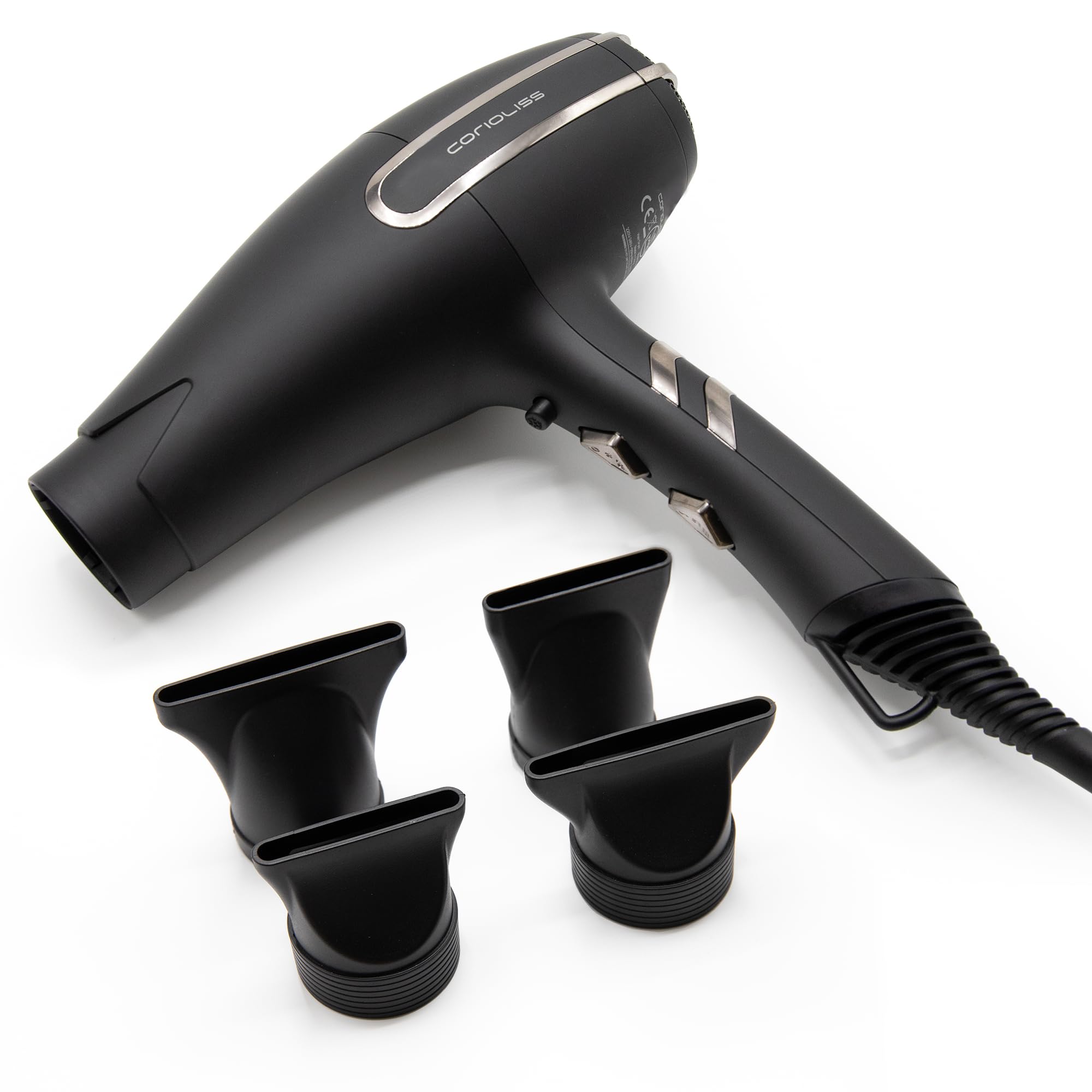 Corioliss ARC Professional ion hairdryer quiet 75 dB light 430 g latest generation BLDC motor powerful 2400 W motor 4 nozzles