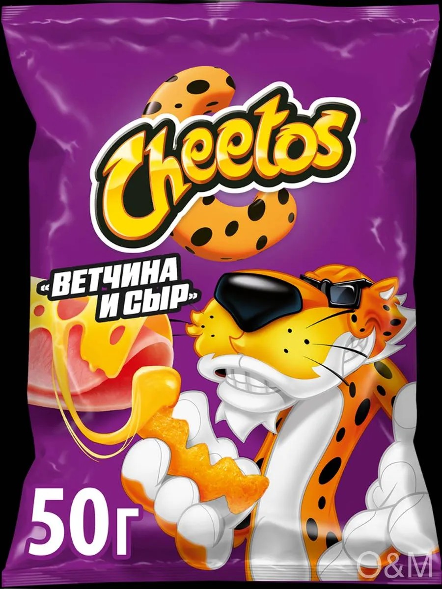 Чипсы кукурузные CHEETOS со вкусом ветчина и сыр – это любимый вкус хрустящих кукурузных палочек в новой уникальной форме зигзагов! CHEETOS с насыщенным вкусом ветчины и сыра производятся из кукурузной крупы из натуральной кукурузы, выращенной в России, и сушатся в горячем воздухе печи. В линейке представлены и другие вкусы кукурузных снеков: «Сыр», «Кетчуп» и «Краб».