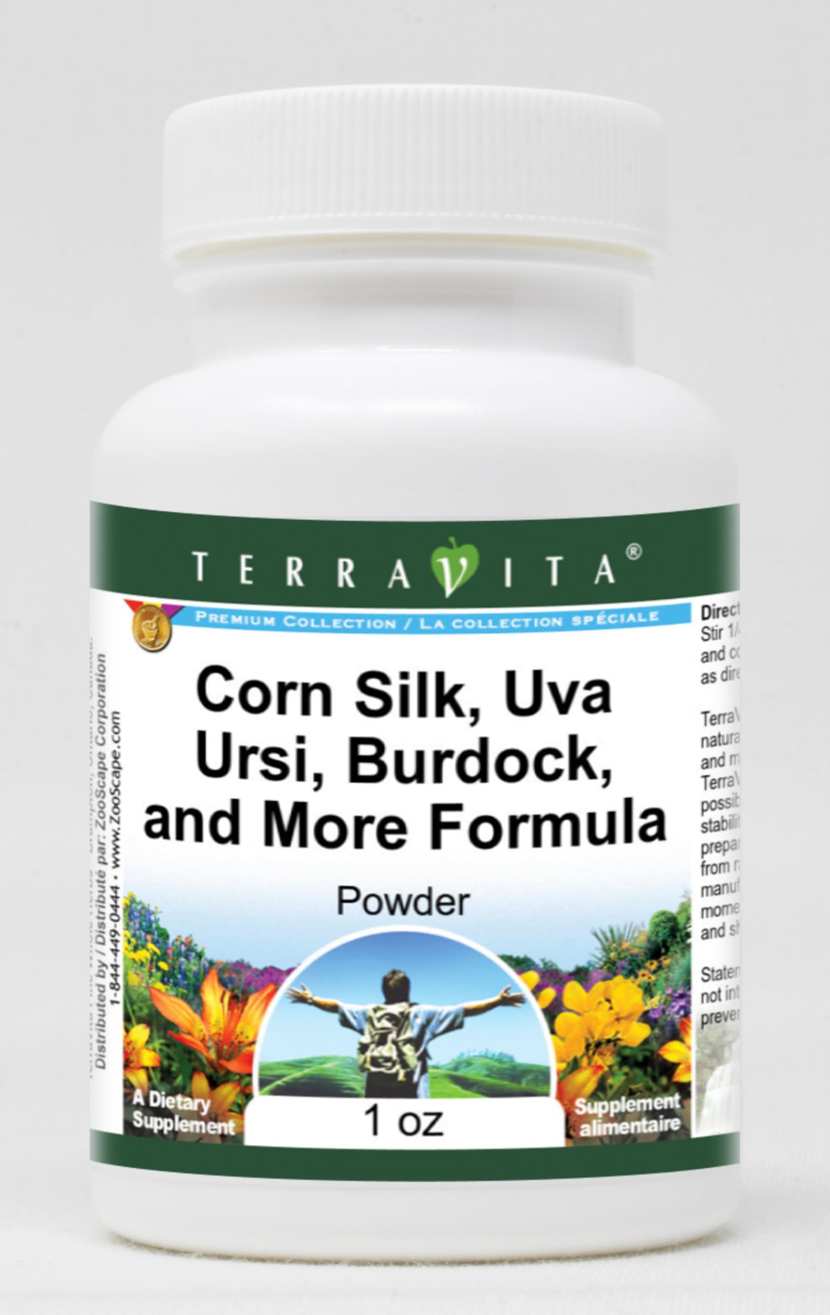 Convenient Powder format. Size: 1 oz. Manufacturer: TerraVita. No fillers. Corn Silk, Uva Ursi, Burdock, and More Formula Powder (1 oz, ZIN: 517085).