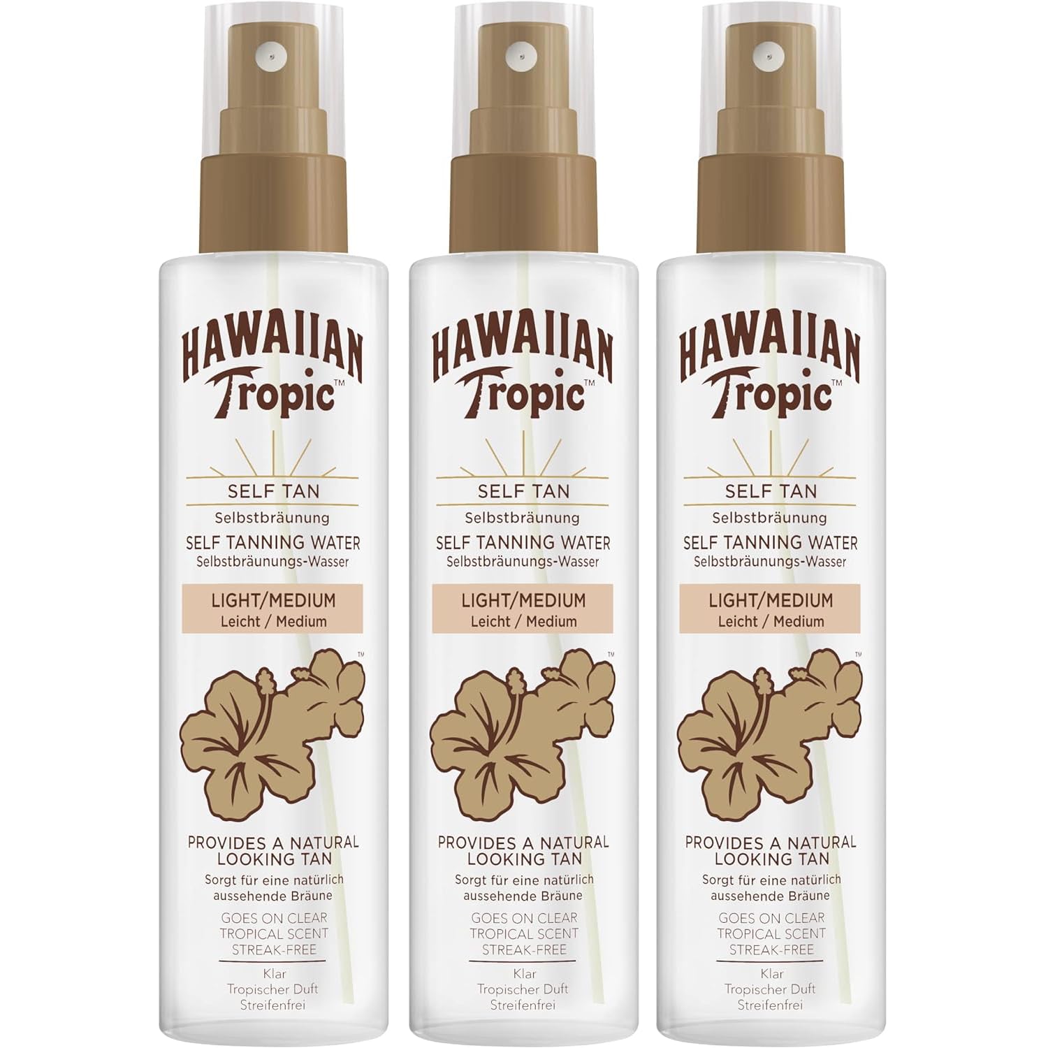 Hawaiian Tropic Self Tan Light Medium is formulated to provide an even, natural-looking tan from the very first use. Its light, sheer texture makes it easy to apply and suitable for all skin types. The tan develops gradually over several hours after application, allowing for precise control of the desired shade and preventing an overly dark or artificial appearance. Its unique formula contains natural ingredients that hydrate and nourish your skin while you tan. The presence of vitamin E adds a powerful antioxidant effect to the formula, helping to protect the skin from free radical damage. It also helps keep skin healthy and youthful. Don't miss the opportunity to try this fantastic product and enjoy a golden tan all year round. Dermatologically tested. Directions: Shake well before use dispense an appropriate amount onto your hand or an applicator apply evenly to clean, dry skin wash hands thoroughly after application to avoid unwanted staining. Format: 3 x 190 ml INGREDIENTS Aqua, DIHYDROXYACETONE, PROPYLENE GLYCOL, TRIDECETH-9, POLYSORBATE 20, PEG-5 ETHYLHEXANOATE, GLYCERIN, ETHOXYDIGLYCOL, BUTYLENE GLYCOL, PHENOXYETHANOL, PARFUM, PEG-12 DIMETHICONE, TOCOPHERYL Summer, aloo. E BARBADENSIS LEAF JUICE, BENZYL ALCOHOL, DISODIUM EDTA, HEXYL CINNAMAL, benzyl benzoate, lemon, CI 14700, CI 19140, CI 420903-pack of 190ml bottles. Wash hands thoroughly after application to avoid unwanted staining. The presence of vitamin E adds a powerful antioxidant effect to the formula, helping to protect the skin against damage caused by free radicals. Develops gradually over several hours after application, allowing for precise control of the desired tone. The self-tanning water has a light and transparent texture, making it easy to apply and suitable for all skin types.3 X Hawaiian Tropic Autobronzant Corps Self Tanning Eau pour Peaux Claires Moyennes pour Visage et Corps Longue Tenue, 190 mlDESCRIPTION DU PRODUIT DESCRIPTION DU PRODUIT L'eau autobronzante Hawaiin Tropic Self Tan Light Medium est formulée pour garantir dès les premières utilisations un bronzage uniforme et naturel, dotée d'une texture légère et transparente, ce qui la rend facile à appliquer et adaptée à tous les types de peau. Il se développe progressivement au cours de plusieurs heures après l'application, permettant un contrôle précis du ton désiré et évitant un aspect trop sombre ou artificiel. Sa formule unique contient des ingrédients naturels qui hydratent et nourrissent votre peau tout en vous bronzant. La présence de vitamine E ajoute un puissant effet antioxydant à la formule, aidant à protéger la peau contre les dommages causés par les radicaux libres. Il contribue également à garder la peau saine et jeune. Ne manquez pas l'occasion d'essayer ce fantastique produit et de profiter d'une peau dorée toute l'année. Testé sous contrôle dermatologique. Utilisation : bien agiter avant utilisation délivrer une quantité appropriée sur la main ou sur un applicateur appliquer uniformément sur une peau propre et sèche bien laver les mains après l'application pour éviter les taches indésirables. Format : 3 x 190 ml INGRÉDIENTS Aqua, DIHYDROXYACETONE, PROPYLENE GLYCOL, TRIDECETH-9, POLYSORBATE 20, PEG-5 ETHYLHEXANOATE, GLYCERIN, ETHOXYDIGLYCOL, BUTYLENE GLYCOL, PHENOXYETHANOL, PARFUM, PEG-12 DIMETHICONE, TOCOPHERYL Été, aloo. E BARBADENSIS LEAF JUICE, BENZYL ALCOHOL, DISODIUM EDTA, HEXYL CINNAMAL, benzyl benzoate, citron, CI 14700, CI 19140, CI 42090Format de 3 pièces de 190 ml,. Bien laver les mains après l'application pour éviter les taches indésirables,. La présence de vitamine E ajoute un puissant effet antioxydant à la formule, aidant à protéger la peau contre les dommages causés par les radicaux libres,. Se développe progressivement au cours de plusieurs heures après l'application, permettant un contrôle précis du ton désiré,. L'eau autobronzante a une texture légère et transparente, ce qui la rend facile à appliquer et adaptée à tous les types de peau,.