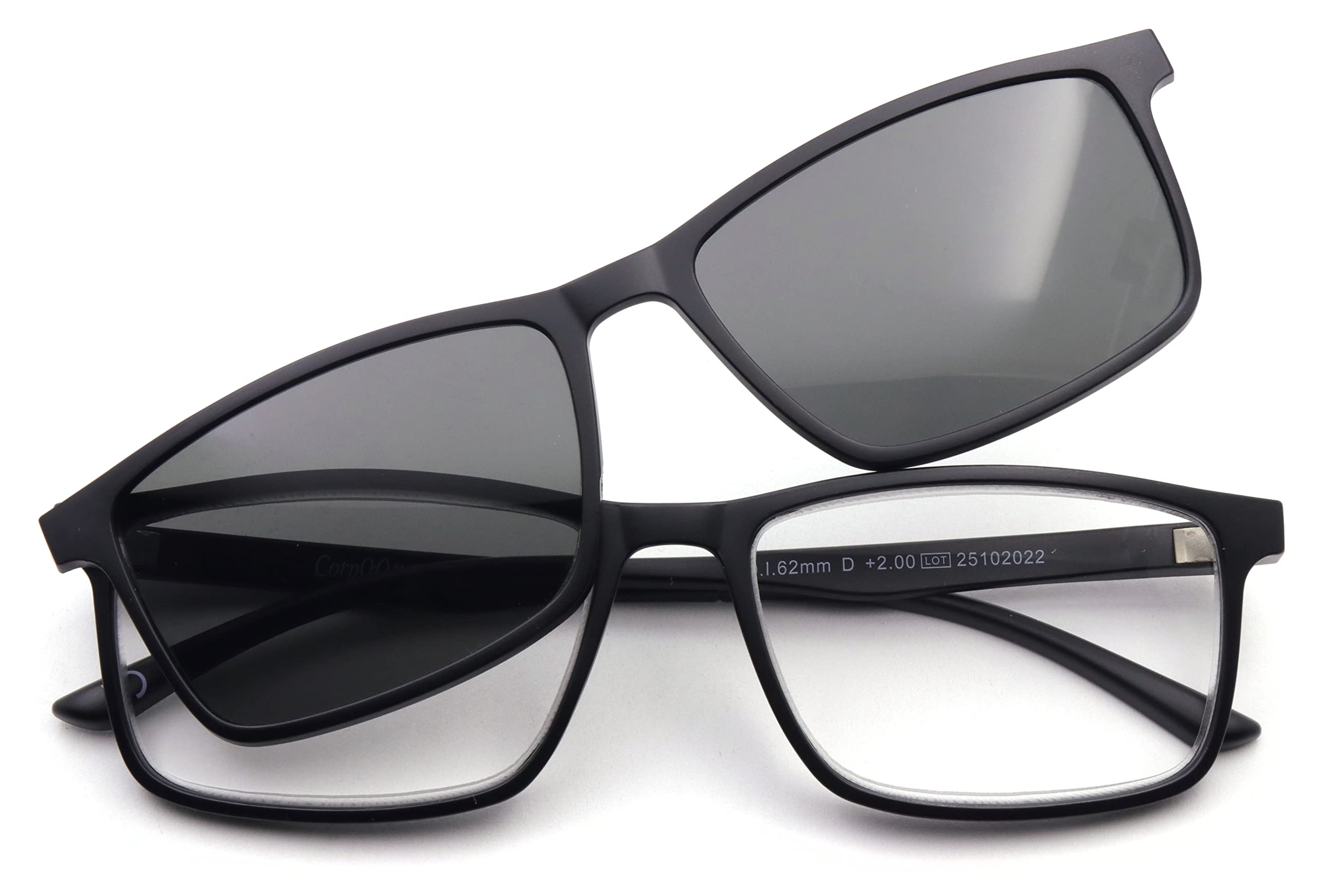Corpootto Unisex Clip-On Reading Glasses Black-Grey Lenses M