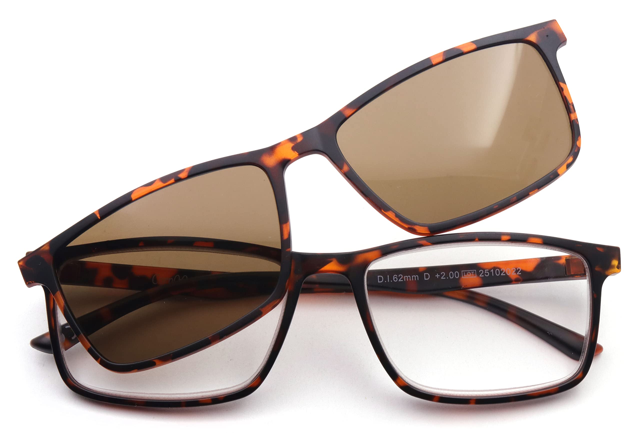Corpootto Unisex Clip-On Lesebrille, Schildkröte-Linsen braun, M