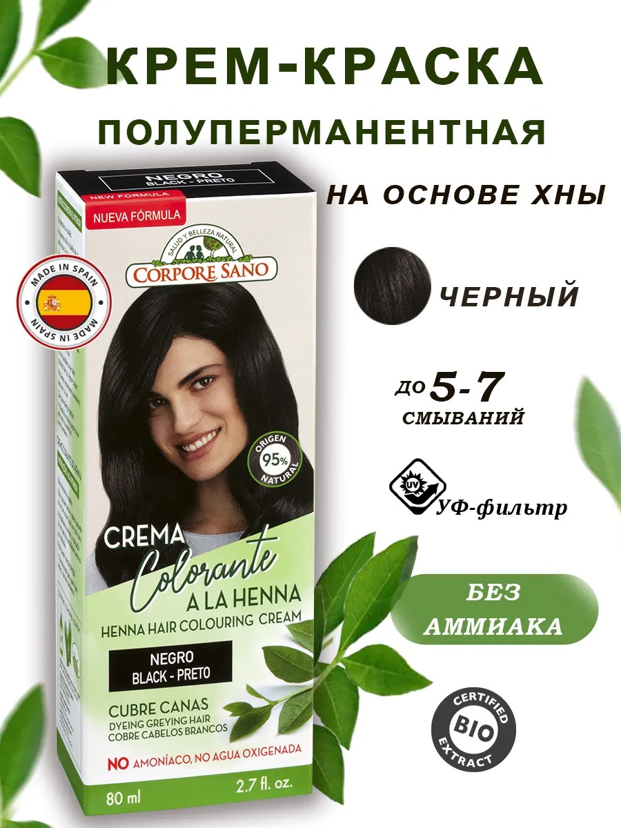 Корпоре Сано Полуперманентная крем-краска для Черных волос с хной 80мл