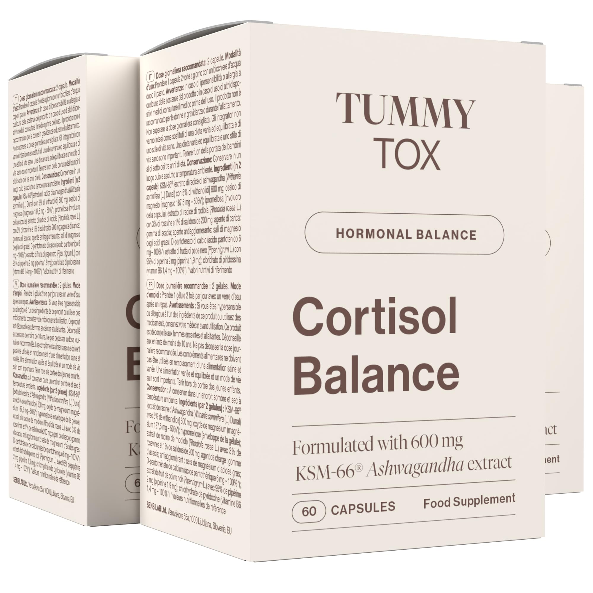 Cortisol Balance - 600 mg Ashwagandha KSM 66, Rhodiola Rosea avec Magnésium, Vitamine B6 et B5-180 gélules par Tummy Tox