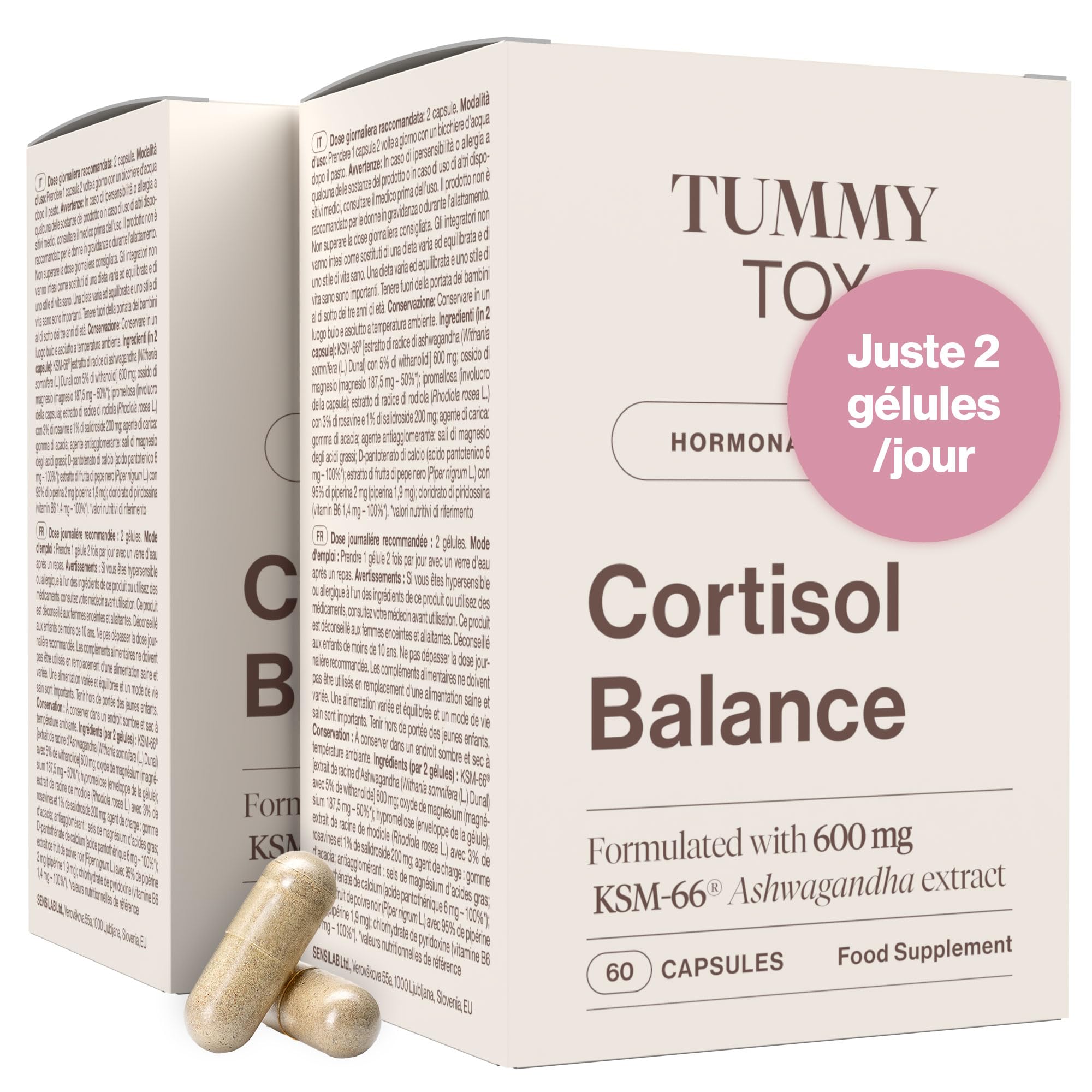 Fabriqué en UE - Cortisol Balance est un produit 100 naturel fabriqué selon les normes pharmaceutiques les plus strictes, conformément aux systèmes de gestion de la sécurité alimentaire GMP et HACCP. Toutes les matières premières et tous les produits finis font l'objet d'un contrôle minutieux et ont été soumis à des analyses microbiologiques et de métaux lourds. Développé et fabriqué par Sensilab (SI) - avec 20 ans d'expérience dans le développement et la production de compléments alimentaires. Le magnésium est le minéral de référence pour la relaxation musculaire et le soulagement de la tension. Nous avons ajouté de l'extrait de poivre noir (pipérine) pour une meilleure biodisponibilité !. Complément alimentaire réduisant le taux de cortisol et contenant les deux adaptogènes végétaux les plus puissant: la Rhodiola et l'Ashwagandha - un moyen naturel de soulager le stress. Sans hormone et 100 à base de plantes. Sans produits nocifs. La rhodiola rosea est traditionnellement utilisée pour aider à soulager le stress. Nous avons également ajouté de la vitamine B6, connue pour sa participation à la régulation de l'activité hormonale et de la production d'énergie dans l'organisme, et de la vitamine B5 pour réduire la fatigue. Puissantes gélules d'ashwagandha contenant des ingrédients naturels pour équilibrer les niveaux d'hormones de stress. Améliore ta concentration et ton humeur grâce à la puissance de l'extrait de racine d'ashwagandha. Programme de 2 mois avec 120 gélules.