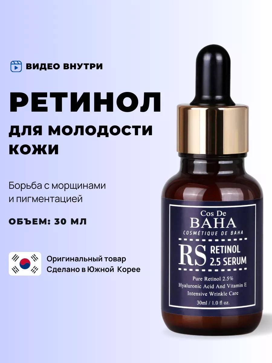Корейская сыворотка от морщин (face serum) Cos De BAHA поможет вернуть молодость и сияние вашей коже. Разгладит мимические морщины, обеспечит видимый эффект увлажнения и лифтинга. Закажите сыворотку Cos De BAHA Retinol 2,5 Serum прямо сейчас и почувствуйте магию корейского ухода за кожей на себе!