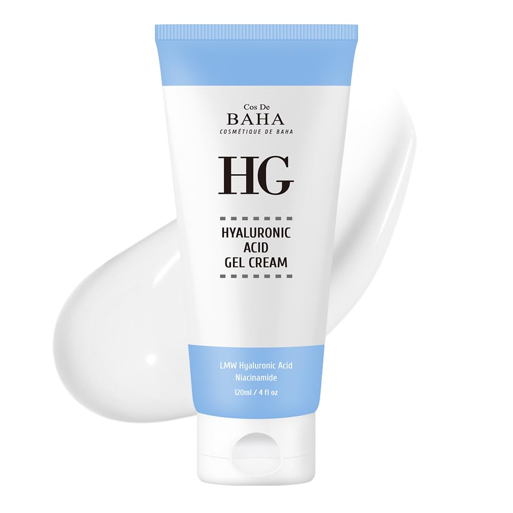 Cos De BAHA HG120 Hyaluronic Gel Cream is a large-size, lightweight gel cream formulated with a multi-hyaluronic acid complex to help keep skin feeling hydrated, plump, and comfortable throughout the day. The formula starts with aloe barbadensis leaf extract and combines propanediol, glycerin, niacinamide, betaine, and multiple forms of hyaluronic acid, including sodium hyaluronate, hydrolyzed hyaluronic acid, sodium hyaluronate crosspolymer, hydroxypropyltrimonium hyaluronate, sodium acetylated hyaluronate, and hyaluronic acid. This layered "hyaluronic acid complex" is designed to give the skin a fresh, bouncy feel with a cooling gel-cream texture that absorbs quickly without a sticky or greasy residue. Hyaluronic acid complex – A blend of several molecular weights and modified forms of hyaluronic acid helps the skin feel deeply hydrated on the surface and more supple to the touch. Light gel-cream texture – Emulsifiers like cetearyl alcohol, cetearyl olivate, sorbitan olivate, and glyceryl stearate create a smooth, cushiony gel-cream that spreads easily and sinks in fast. Hydration soothing support – Aloe, betaine, panthenol, dipotassium glycyrrhizate, and allantoin work together to help the skin feel calm, soft, and well-moisturized. Botanical blend – Sambucus nigra (elderflower), momordica charantia (bitter melon), leontopodium alpinum (edelweiss), and camellia sinensis (green tea) extracts add a botanical touch (N.O.I.P 68 ). 120ml family-size – Large 120ml (4.05 Fl Oz) size is ideal for generous daily use on face and neck, or for those who prefer a single hydrating cream step morning and night. How to Use Use morning and night as a moisturizer step after toner and serums. Apply an appropriate amount to face and neck and gently massage until fully absorbed. Can be layered for extra hydration or used as a light sleeping pack by applying a slightly thicker layer at night. Follow with sunscreen in the morning as the last step of your routine. Storage Caution For external use only. Do not use on broken or irritated skin. Patch test before first use and discontinue use if irritation occurs. Keep away from direct sunlight and high temperatures. Store in a cool, dry place with cap tightly closed. Keep out of reach of children.LABELING INFORMATION: Due to recent changes in cosmetic labeling regulations across different countries (Europe, USA), packaging may vary. For products containing aloe, please note that the ingredient hasn't been removed rather, extraction base ingredients can no longer be indicated and are now labeled as "water.". Ideal as an everyday face and neck cream or as a layering moisturizer over active serums in both simple and multi-step routines. Includes niacinamide, dipotassium glycyrrhizate, and allantoin to support a smooth-feeling surface and a calm, well-conditioned appearance. Lightweight gel-cream texture absorbs quickly and works well for normal, combination, and dehydrated oily skin types that need water-based moisture without a greasy finish. Aloe-based formula with propanediol, glycerin, betaine, and panthenol helps maintain a soft, soothed, and comfortable complexion all day. Large-size gel cream with a multi-layer hyaluronic acid complex to deliver a fresh, bouncy, hydrated feel on the skin without heaviness.