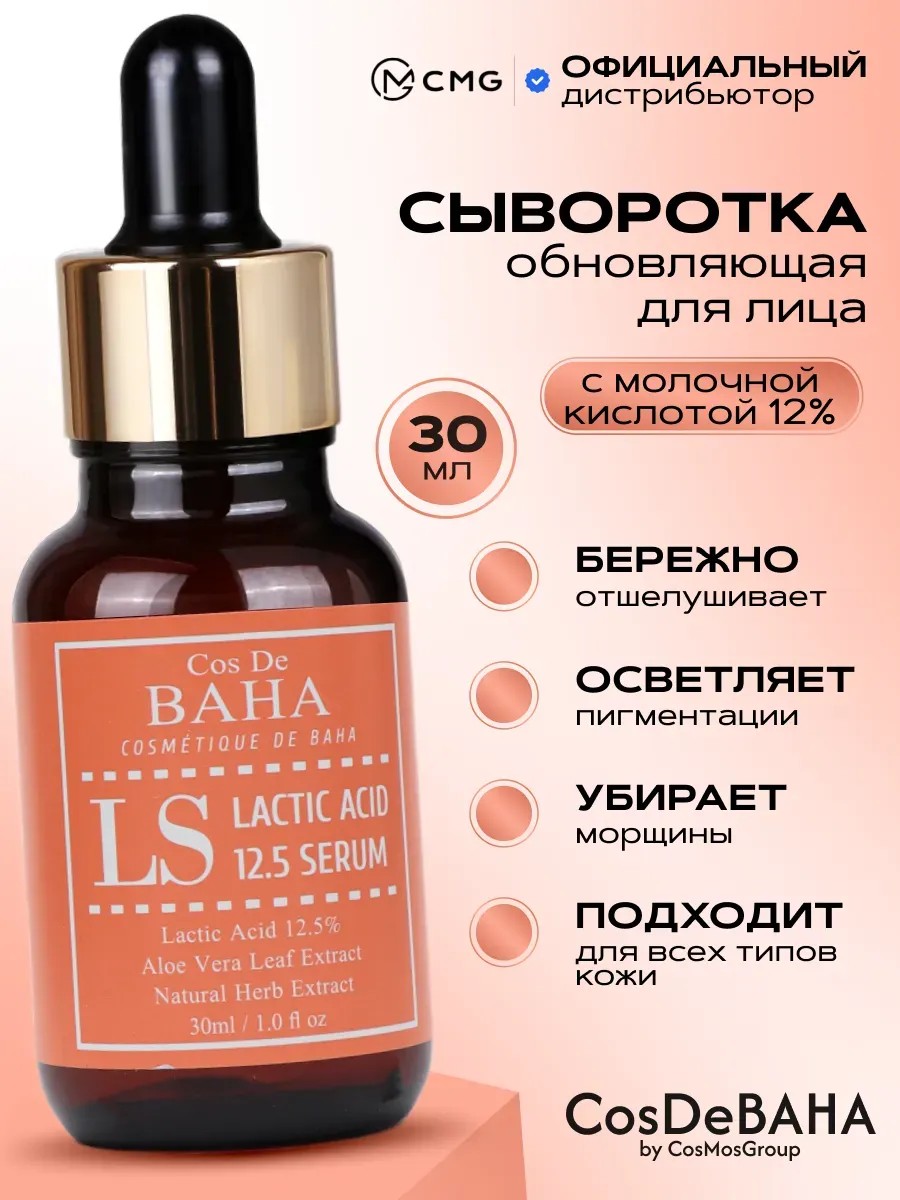 Cos De Baha Lactic Acid Serum – это высококачественная косметика премиум класса, которая стимулирует выработку коллагена, оказывает общеукрепляющее действие и повышает упругость кожи. При этом она не пересушивает кожу благодаря содержанию успокаивающих и увлажняющих компонентов. Сыворотка также устраняет тусклость и следы усталости, придаёт коже естественное сияние и смягчает огрубевшую кожу.