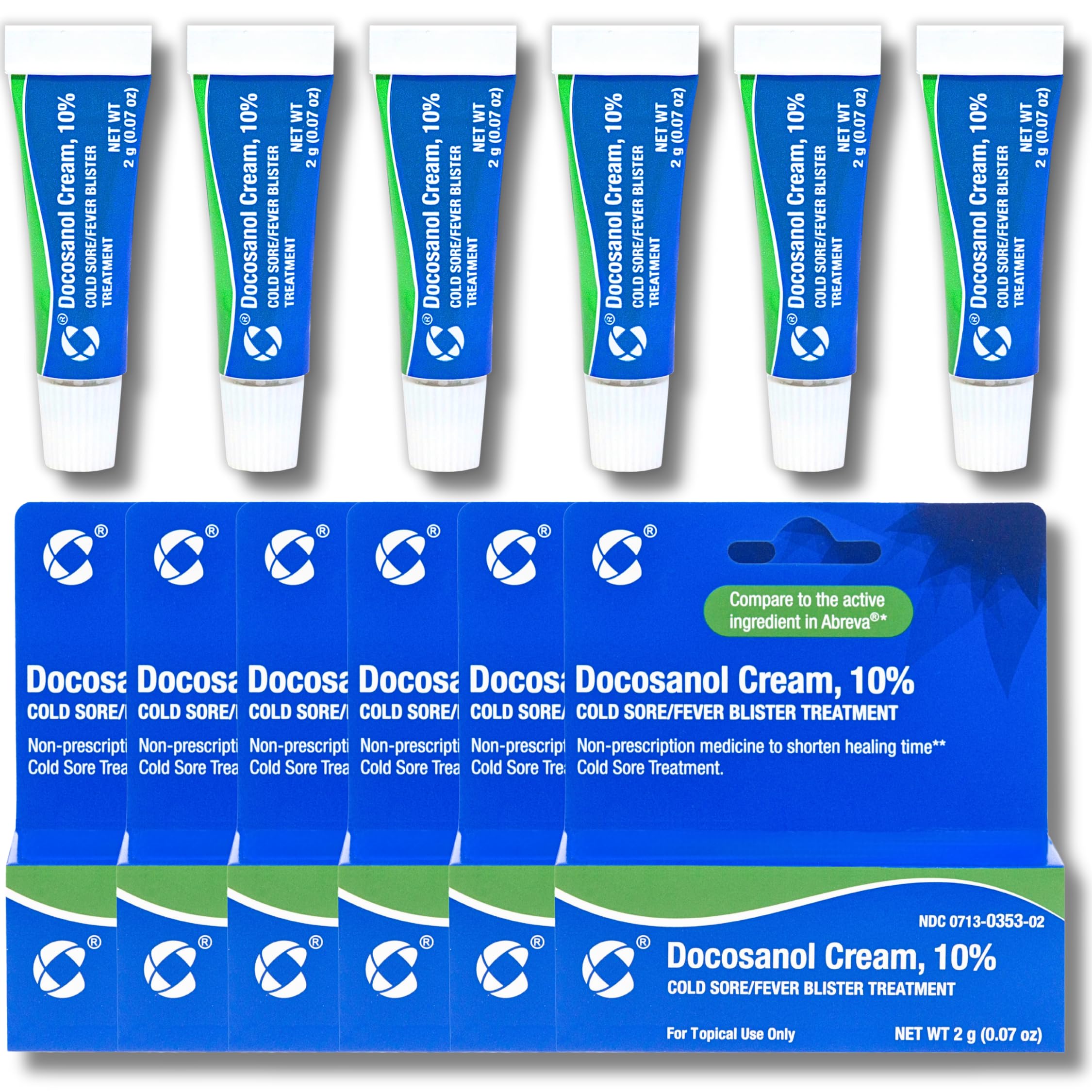 Easy Application: Apply only to the affected areas. Effective on the go relief compact size. Shortens Healing Time and duration of Symptoms: This product may reduce the duration of symptoms such as tingling, pain, burning, and or itching. Docosanol Cream, 10 - Treat cold sores fever blisters on the face or lips.This includes (6) - 0.07oz tube of Docosanol Cream, 10 . Compare to the Active Ingredient in leading national brand.