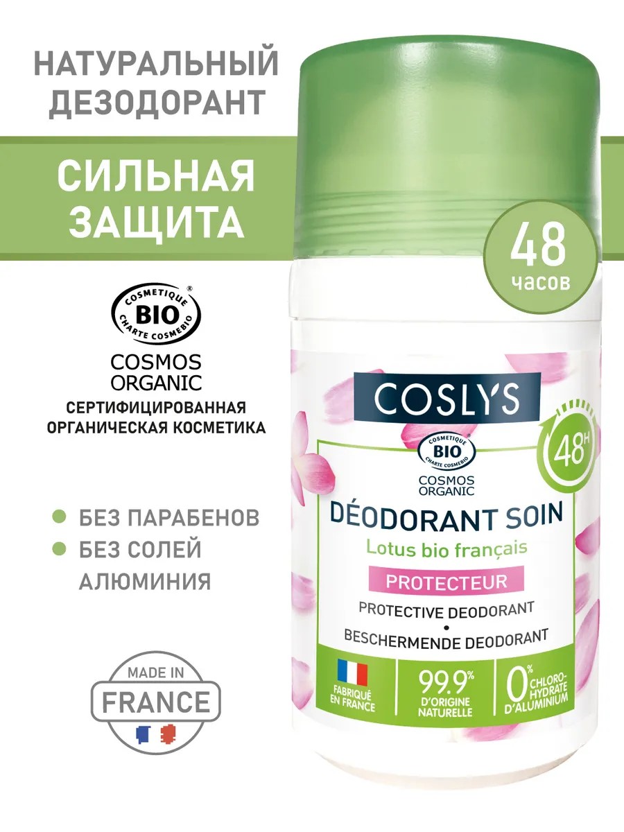 100% натуральный и безопасный шариковый дезодорант COSLYSс с французским органическим лотосом бережно ухаживает за кожей и защищает от неприятного запаха, не блокируя потоотделение. Обеспечивает эффективную защиту от неприятных запахов на 48 часов.