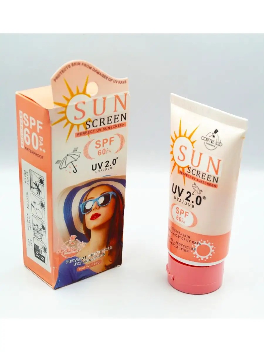 Солнцезащитный крем Cosme Lab Sun Screen UV 2.0 SPF 60+ PA гарантирует максимальную защиту от воздействия UVA- и UVB-лучей SPF 60+/РА. Химические фильтры санскрина поглощают ультрафиолетовые лучи, защищая кожу от повреждения и фотостарения. Солнцезащитное средство обеспечивает высокоэффективную защиту от ожогов и преждевременных возрастных изменений, вызванных солнцем - предотвращает появление морщин, пигментных пятен и обезвоживания. Три вида гиалуроновой кислоты защищают от воздействия солнечных лучей и свободных радикалов, стимулируют процессы регенерации, эффективно заживляют ранки и повреждения, а также, заполняют собой морщины. Корейский крем для лица солнцезащитный от подходит для лица и тела, не оставляет белого налета и не пачкает одежду после высыхания. Нанести санблок непосредственно на кожу за 20 минут перед выходом на солнце. Для поддержания защиты наносите крем с spf 60+ для лица повторно каждые 2-3 часа и после купания. Внимание, туба должна быть заполнена не на 100%. В состав крема от солнца входят активные ингредиенты, как защитные, так и ухаживающие за кожей компоненты. Коллаген в составе обладает антиоксидантными и антибактериальными свойствами, сохраняет красоту и молодость кожи, снимает воспаления и раздражения. Это лучший помощник для борьбы с пигментацией и выравниванием тона. Входящий в состав солнцезащитного крема пантенол увлажняет и успокаивает кожу, защищает ее от потери влаги. Три вида гиалуроновой кислоты защищают от неблагоприятного воздействия солнечных лучей и свободных радикалов, активно стимулируют процессы регенерации, эффективно заживляют ранки и повреждения, а также, заполняют собой морщины, и они становятся менее заметны.