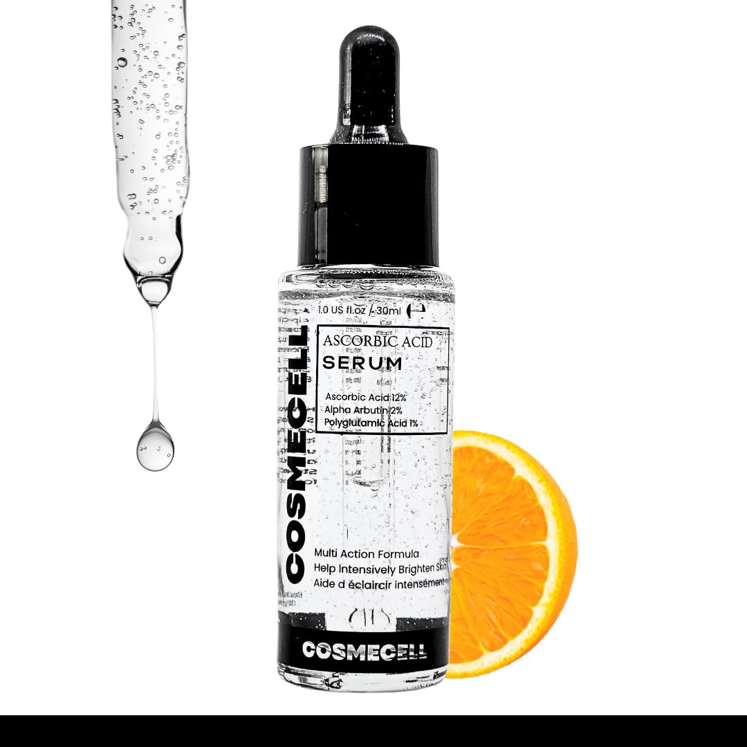 Cosmecell Ascorbic Acid Serum 12% Polyglutamic acid 1% with Alpha Arbutin Skin Brightening Formula 1 fl oz