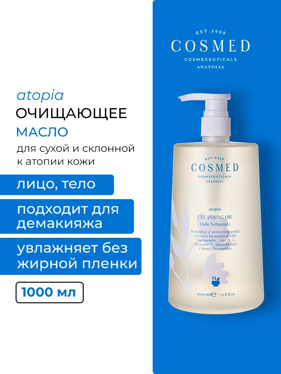 Cosmed Cosmeceuticals Масло для лица и тела для душа и ванны очищающее ATOPIA, 1 л
