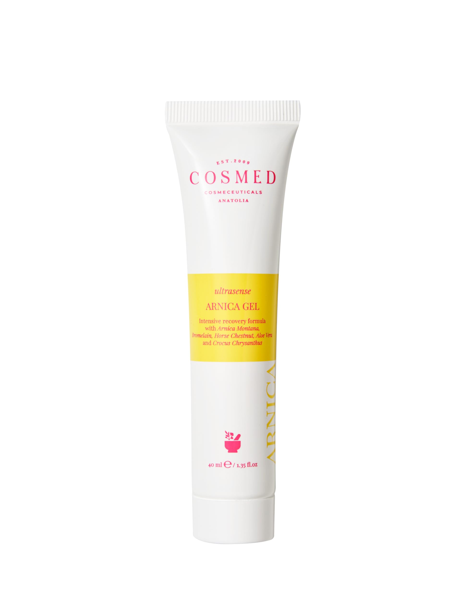 : Cosmed Arnica Gel is an intensely soothing skincare formula specially designed to support skin after external aggressors. The combination of Arnica Montana, bromelain, and horse chestnut extract helps to more quickly reduce swelling caused by impacts, sports activities, or local irritations and visible skin discoloration. Arnica Montana promotes natural regeneration, while bromelain, as an enzymatic agent, promotes microcirculation and helps soothe stressed skin areas. Horse chestnut helps support local circulatory processes and reduce feelings of heaviness and pressure. SyriCalm has a calming effect and can help alleviate irritating reactions caused by external factors. Aloe vera moisturizes and promotes a feeling of softness on the skin, while green tea and Centella Asiatica have an antioxidant and nourishing effect. Plantafluid Complex BC provides additional botanical support to help soothe sensitive and irritated areas. Its light, non-sticky, fragrance-free gel texture absorbs quickly and is ideal after cosmetic treatments, during light external stresses, or anywhere skin needs extra care and soothing. Suitable for daily use. Ingredients: Aqua, Propylene Glycol, Glycerin, Panthenol, Pentylene Glycol, Acrylates C10-30 Alkyl Acrylate Crosspolymer, Benzyl Alcohol, Aloe Barbadensis Leaf Juice, Bromelain, Glucose, Camellia Sinensis Leaf Water, Aesculus Hippocastanum Seed Extract, Ruscus Aculeatus Root Extract, Cene. tella Asiatica Extract, Potassium Hydroxide, Dehydroacetic Acid, Troxerutin, Vitis Vinifera Leaf Extract, Hedera Helix Extract, Polygonum Fagopyrum Leaf Extract, Arnica Montana Flower Extract, Crocus Chrysanthus Bulb, Sodium Copper Chlorophylline Powder, Sodium Benzoate, Pott. For sorbates, phthalaRagmites Karka Extract, Poria Cocos Extract, Citric Acid.