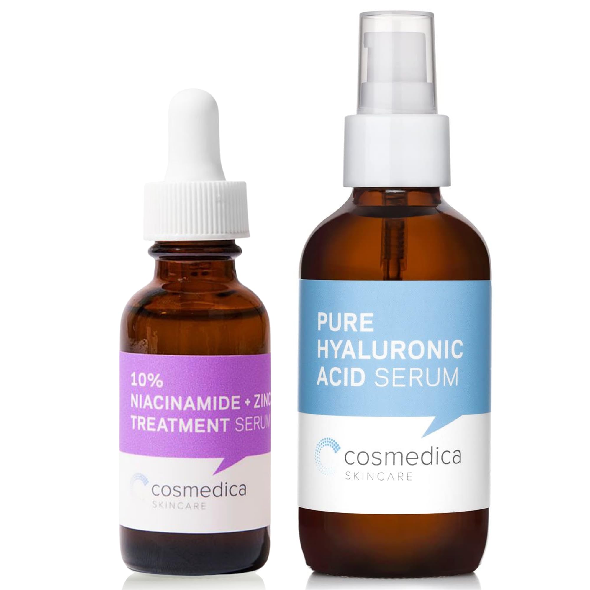 Cosmedica Skincare Niacinamide + Zinc Treatment Serum with Hyaluronic Acid 1 Oz & Pure Hyaluronic Acid Serum for Skin 4 Oz Bundle Hydrating Facial Moisturizer with Anti-Aging Skincare