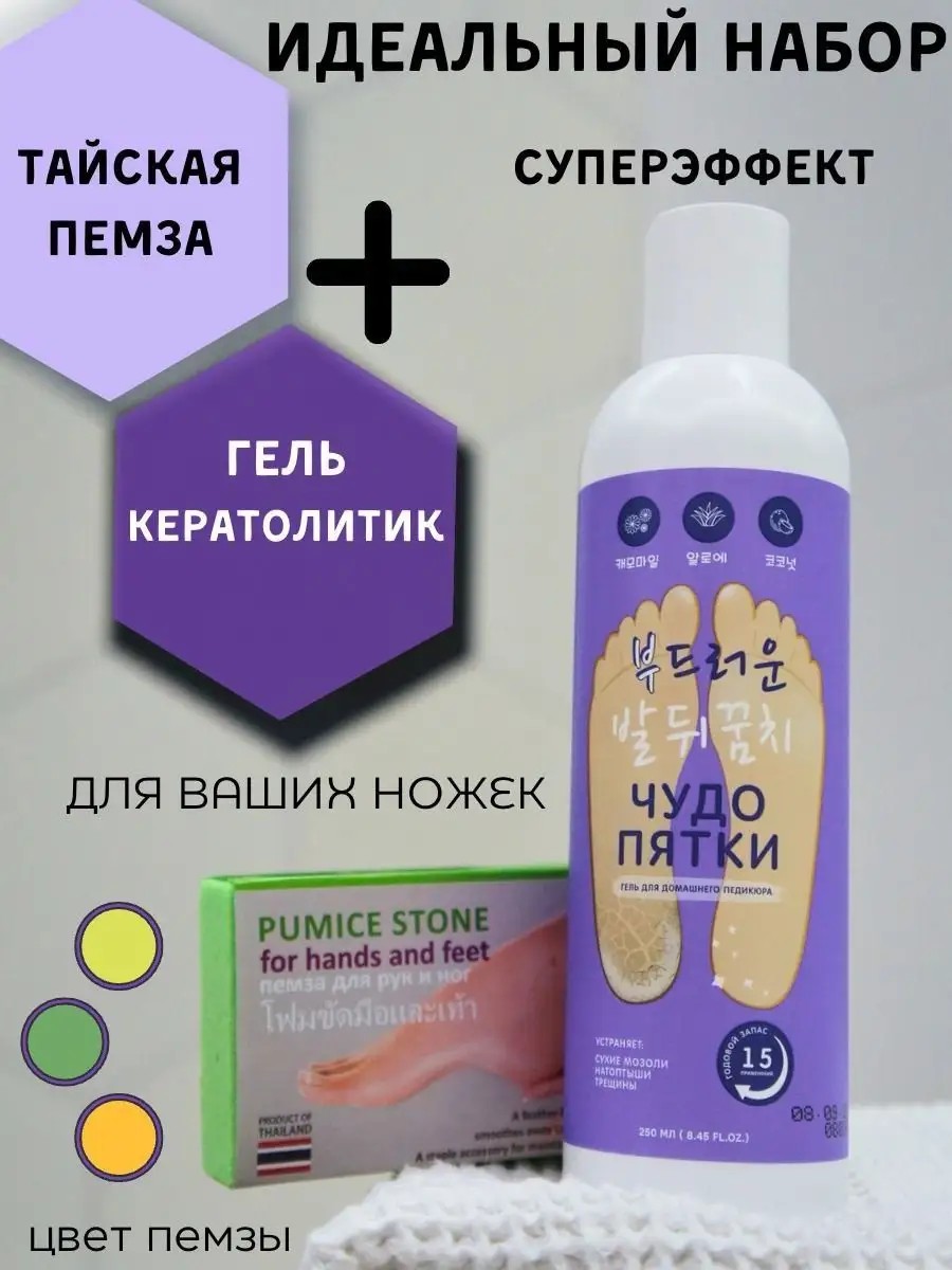 | Комплектация | Гель для домашнего педикюра "Чудо пятки" 250 мл - 1 шт; Пемза для ног косметическая - 1 шт |