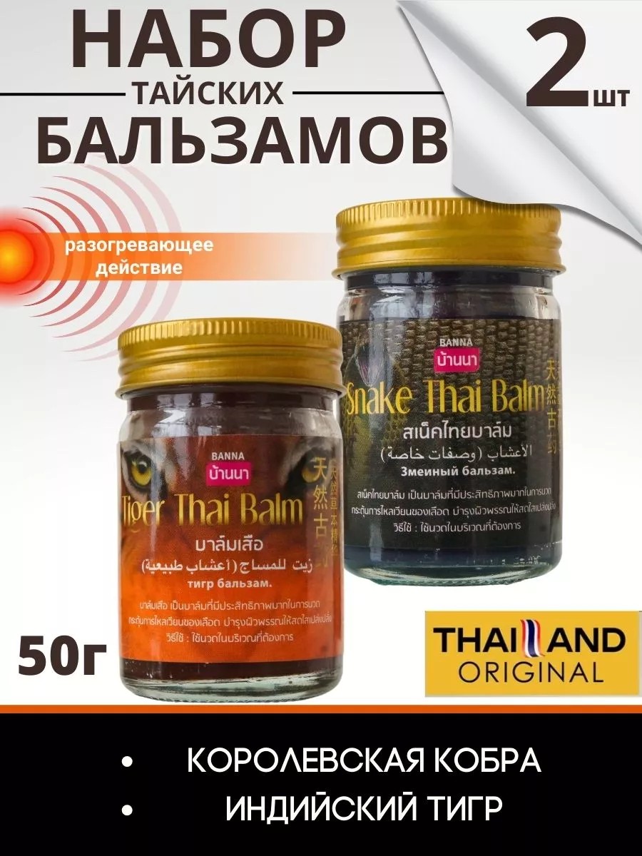 | Комплектация | Бальзам с ядом кобры Banna - 1 шт; Тигровый бальзам Banna - 1 шт |