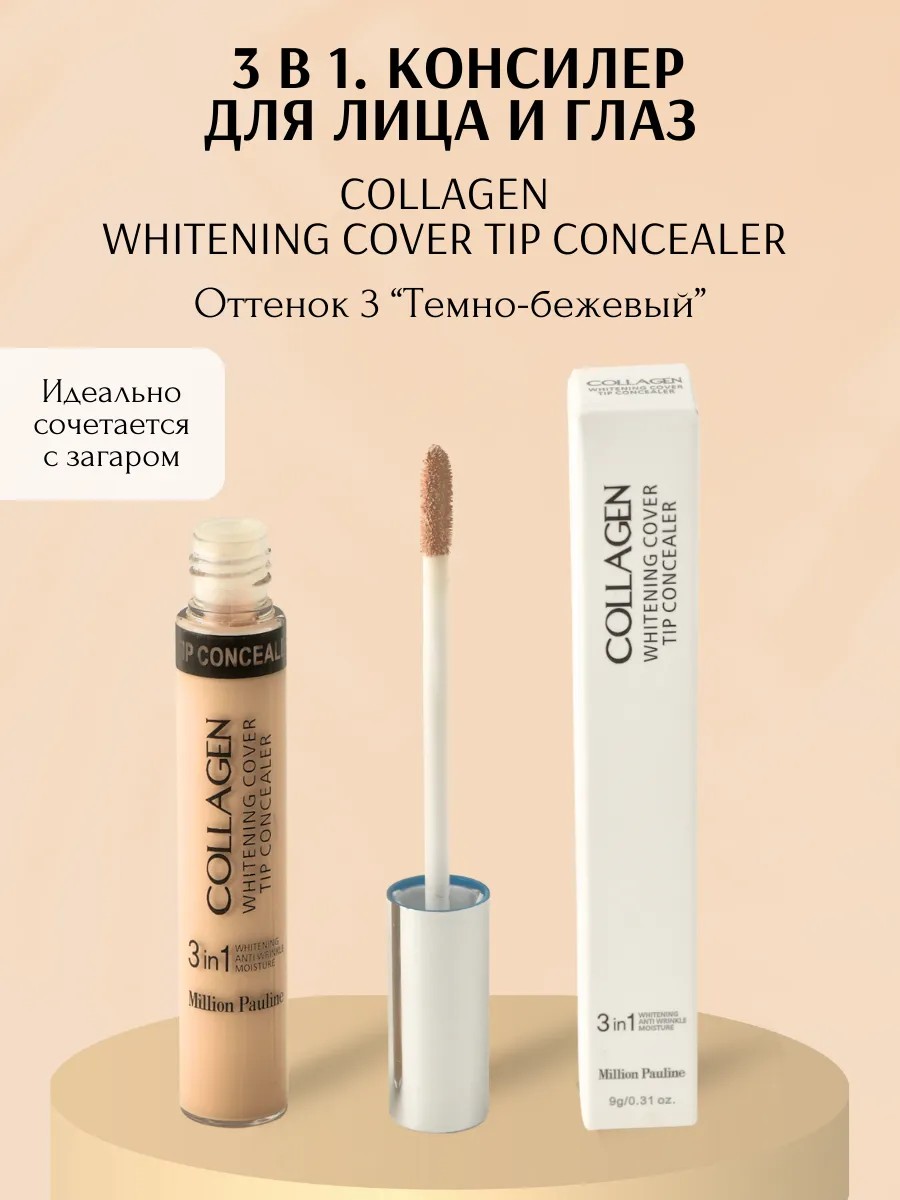 Консилер для лица WHITENING COVER TIP CONCEALER от Million Pauline 3 в 1 - многофункциональный косметический продукт для макияжа. Тональное средство эффективно скрывает покраснения и темные круги под глазами. Ваш внешний вид будет всегда выглядеть отдохнувшим и свежим даже при недосыпе. Тонирование помогает забыть о следах усталости под глазами и мелких дефектах. Основа под макияж перекрывает прыщи и акне, эффективно осветляет пигментные пятна и веснушки. С его помощью можно выполнить контуринг и подчеркнуть черты лица. Легкая кремовая текстура идеально подходит для всех типов кожи. Коллаген в составе способствует длительному увлажнению и глубокому питанию. Инновационная формула консилера в качестве уходового средства обеспечивает безупречный результат без скатывания и ощущения сухости. Корректор жидкий отличается стойкостью, имеет среднюю плотность и матовый финиш. Устойчив при активном образе жизни и не размазывается под воздействием влаги. База матирующая будет выглядеть безукоризненно вне зависимости от погоды, при этом не забивается в поры. Тонкая кисточка-аппликатор дает возможность точечно и равномерно наносить на нужные участки, что значительно экономит время. Консилер позволит вам наслаждаться впечатляющим макияжем в течение дня, также подходит и под вечерний макияж. Удобный формат стика позволяет брать декоративную косметику с собой каждый день. Консилер не занимает много места в женской косметичке, что создает удобство при путешествиях. В продаже три оттенка бежевого тона, - которые смотрятся естественно и свежо. Они подстраиваются под кожу и незаметно корректируют недостатки. Выбери свой оттенок! Увлажняющий скульптор станет вашим секретом красоты и уверенности в себе. Такой подарок женщине обязательно вызовет восторг не только на День рождения или 8 Марта, но и без повода.