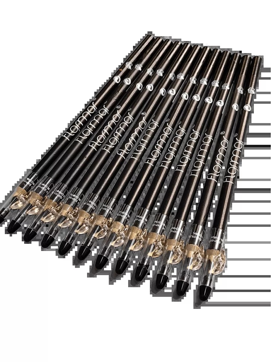 Карандаш для глаз чёрный и создает четкие насыщенные линии и обеспечивает стойкий яркий цвет. Также его можно растушевать для создания красивого дымчатого эффекта. Карандаш для глаз не ломается и не крошится при нанесении, интенсивно пигментированный цвет и стойкую формулу. В наборе 12 шт.
