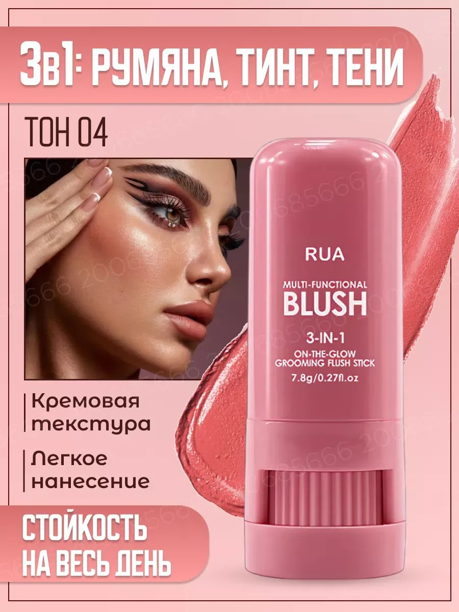 косметика Румяна для лица стик кремовые 3 в 1 тон 04